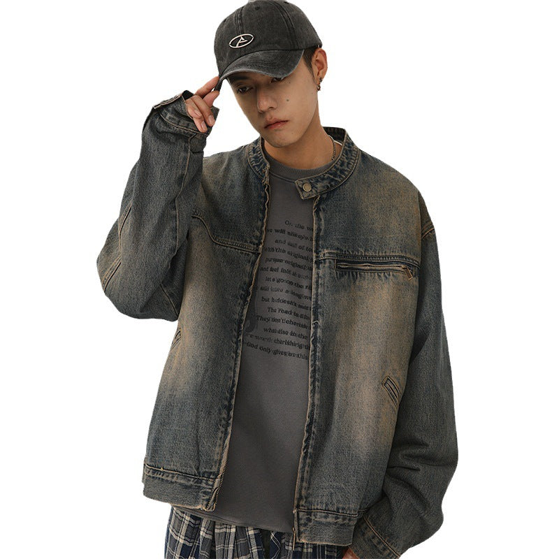 retro washed distressed denim jacket men spring and autumn new loose casual jacket men's tops