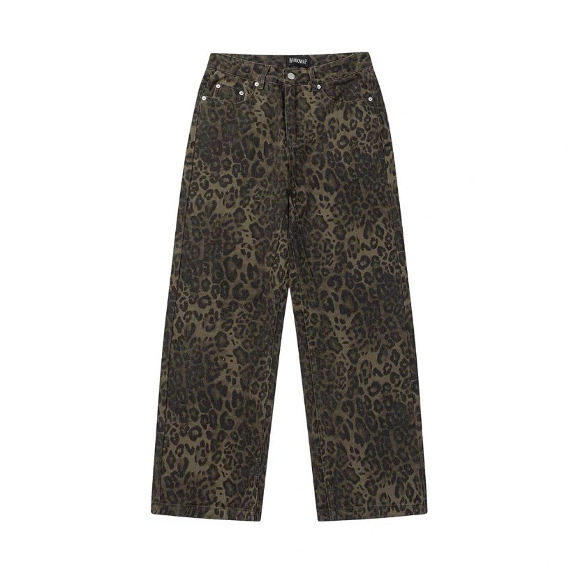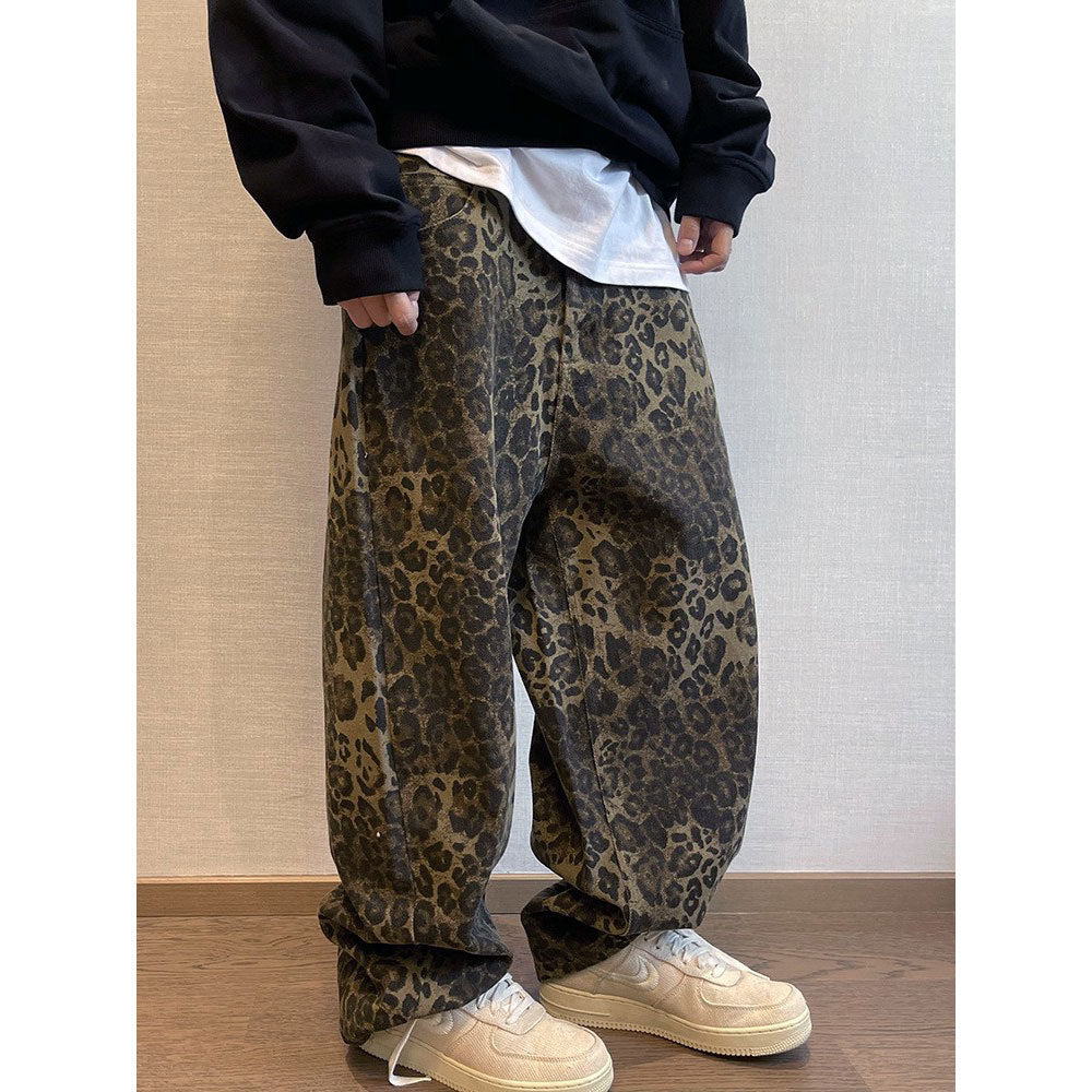 autumn and winter new American retro design niche workwear leopard print loose casual versatile pants men INS