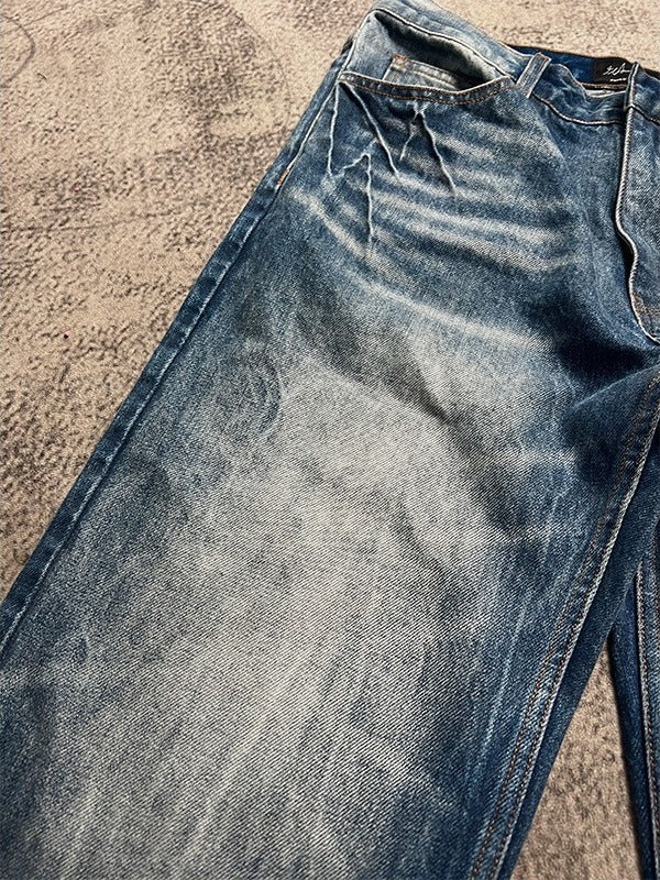 American retro dark blue lightning burst cracked jeans for men and women loose wide-leg pants washed straight flared pants