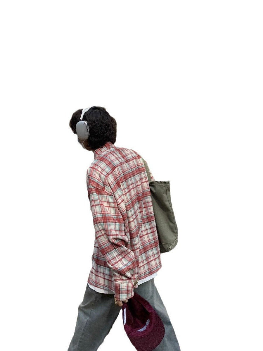 American retro plaid shirt men's spring and autumn new loose casual lazy style long-sleeved shirt versatile jacket top