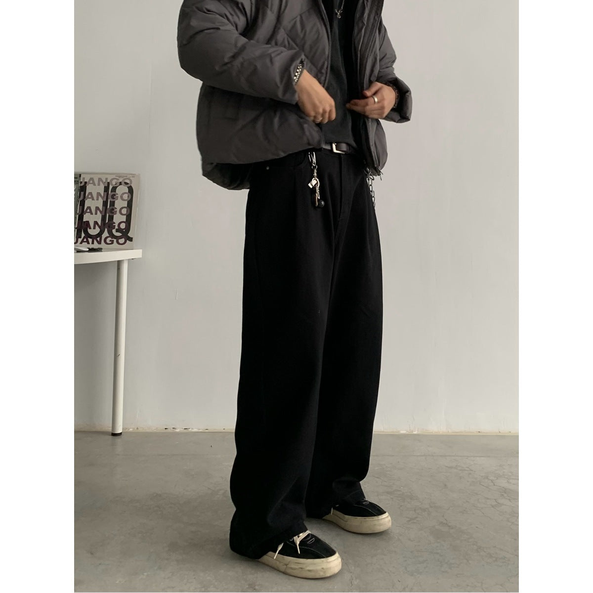 American retro overalls men's spring and autumn new trendy silhouette mopping casual pants Japanese style washed wide-leg trousers
