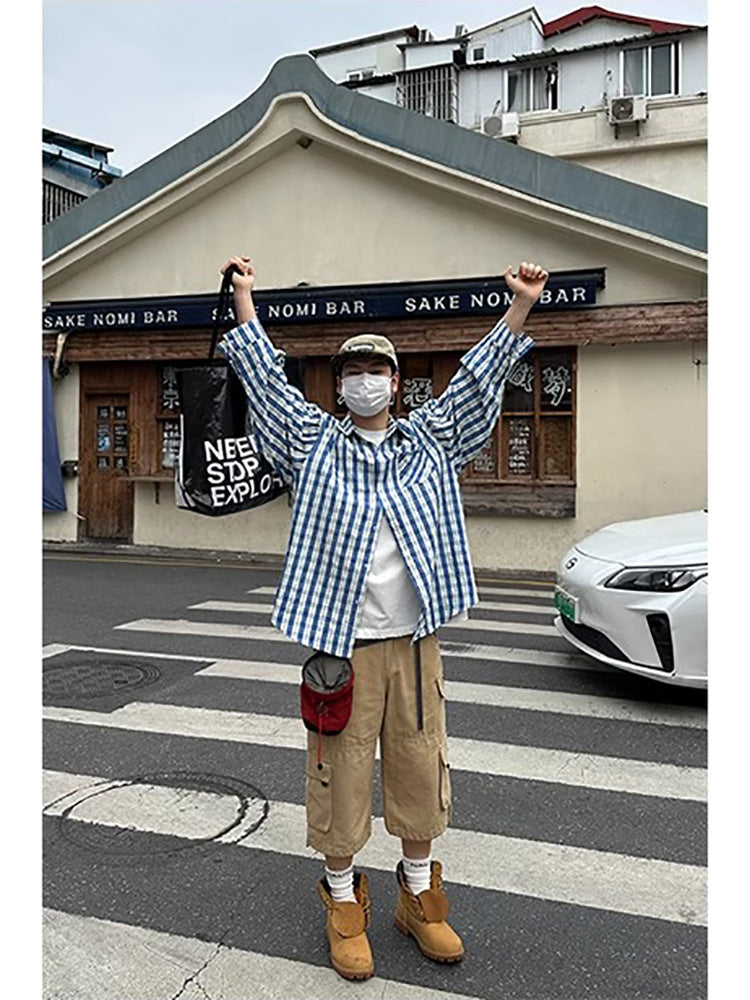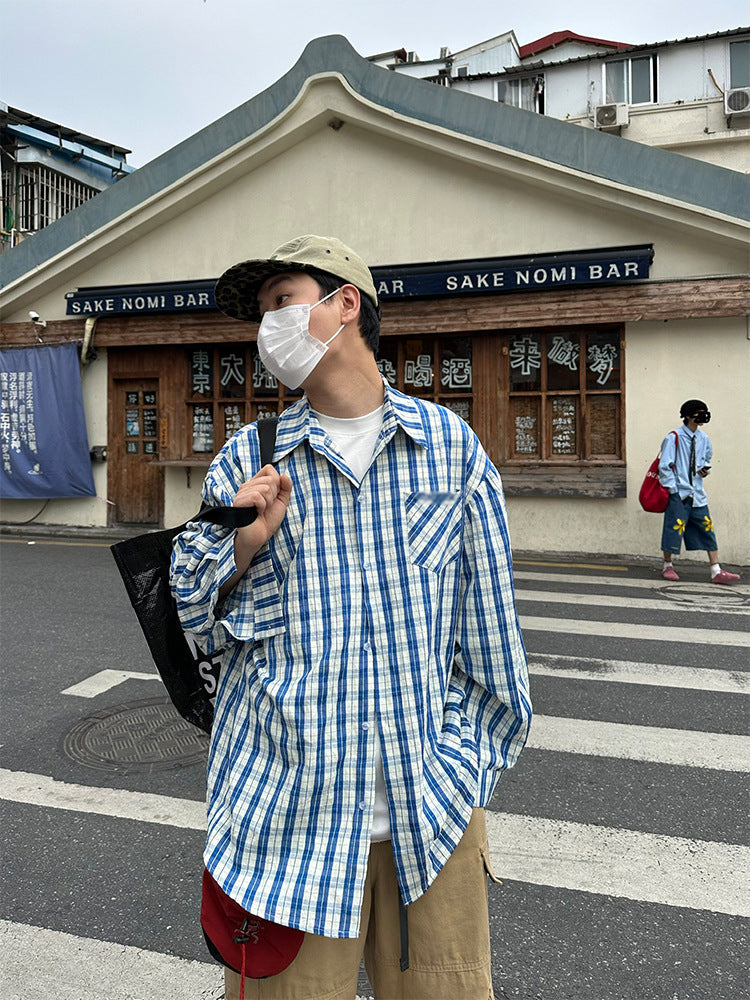 American retro high street casual plaid shirt men's spring sun protection contrast color loose versatile couple shirt jacket