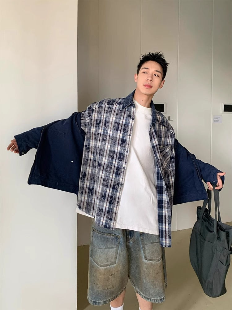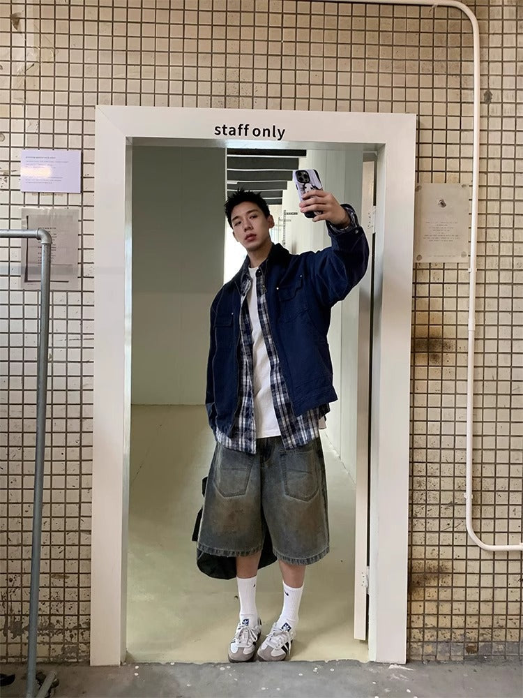 American retro high street old washed wasteland style pocket design denim shorts shorts men's summer new