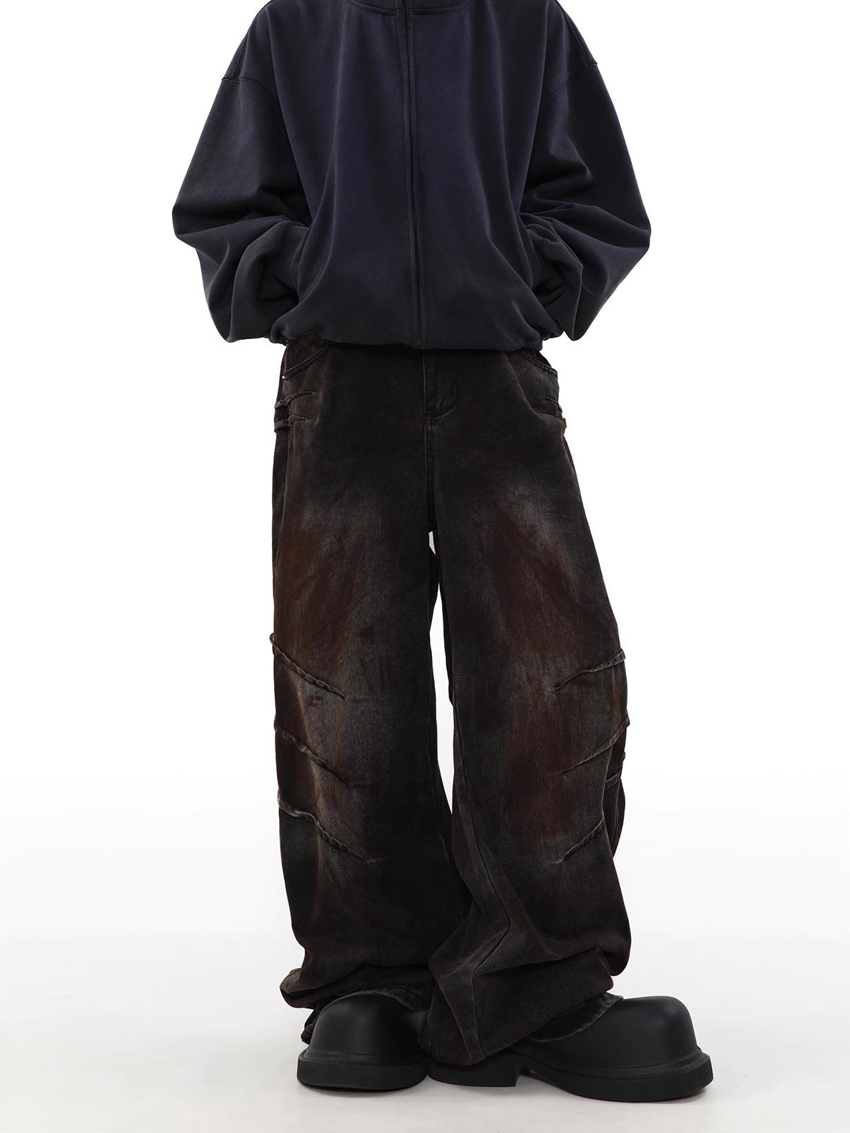 American high street design, old and dirty wasteland style jeans for men, new loose niche straight pants for spring