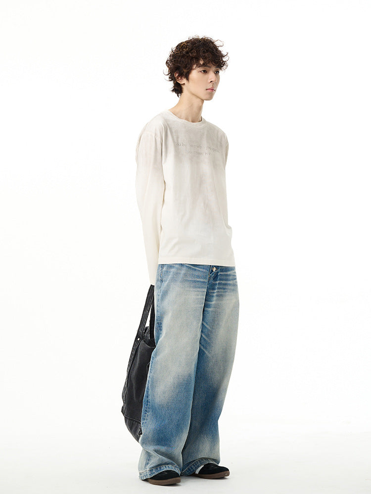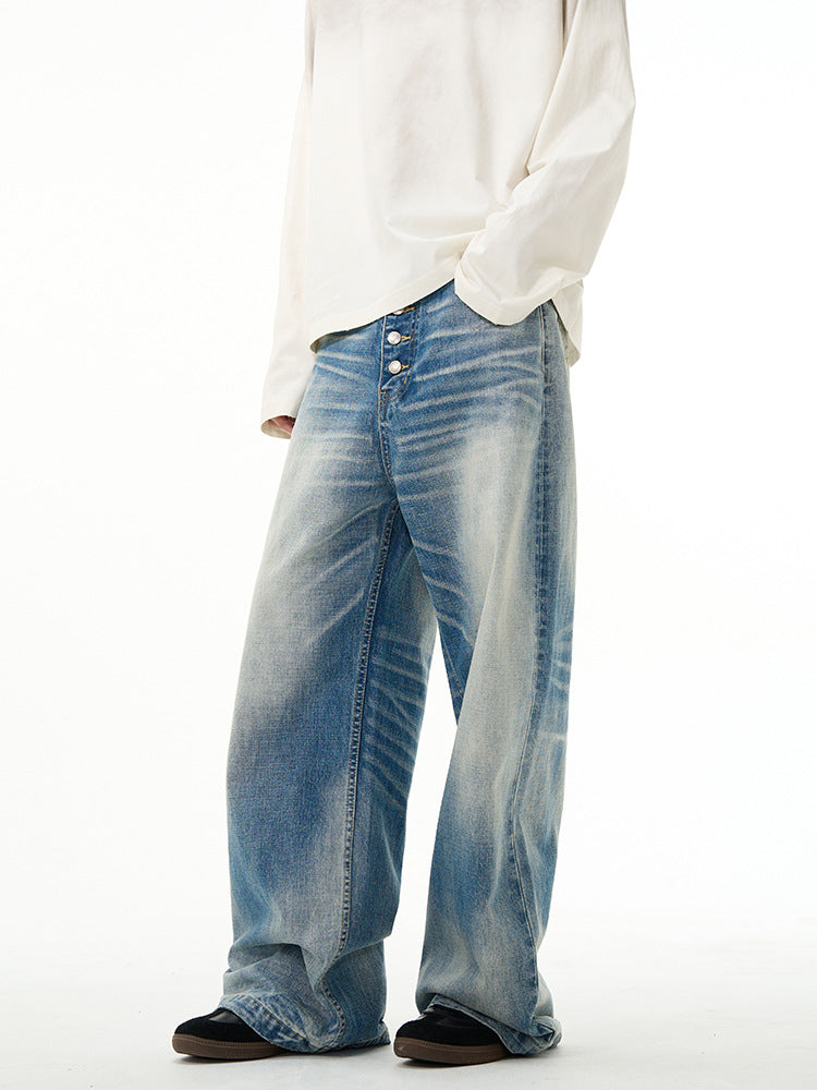American high street retro jeans men's spring new loose straight high-end wide-leg pants handsome pants couple