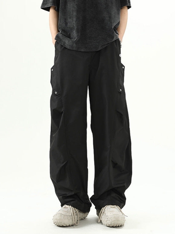 American retro workwear paratrooper pants men summer new design wide-leg pants loose straight casual pants
