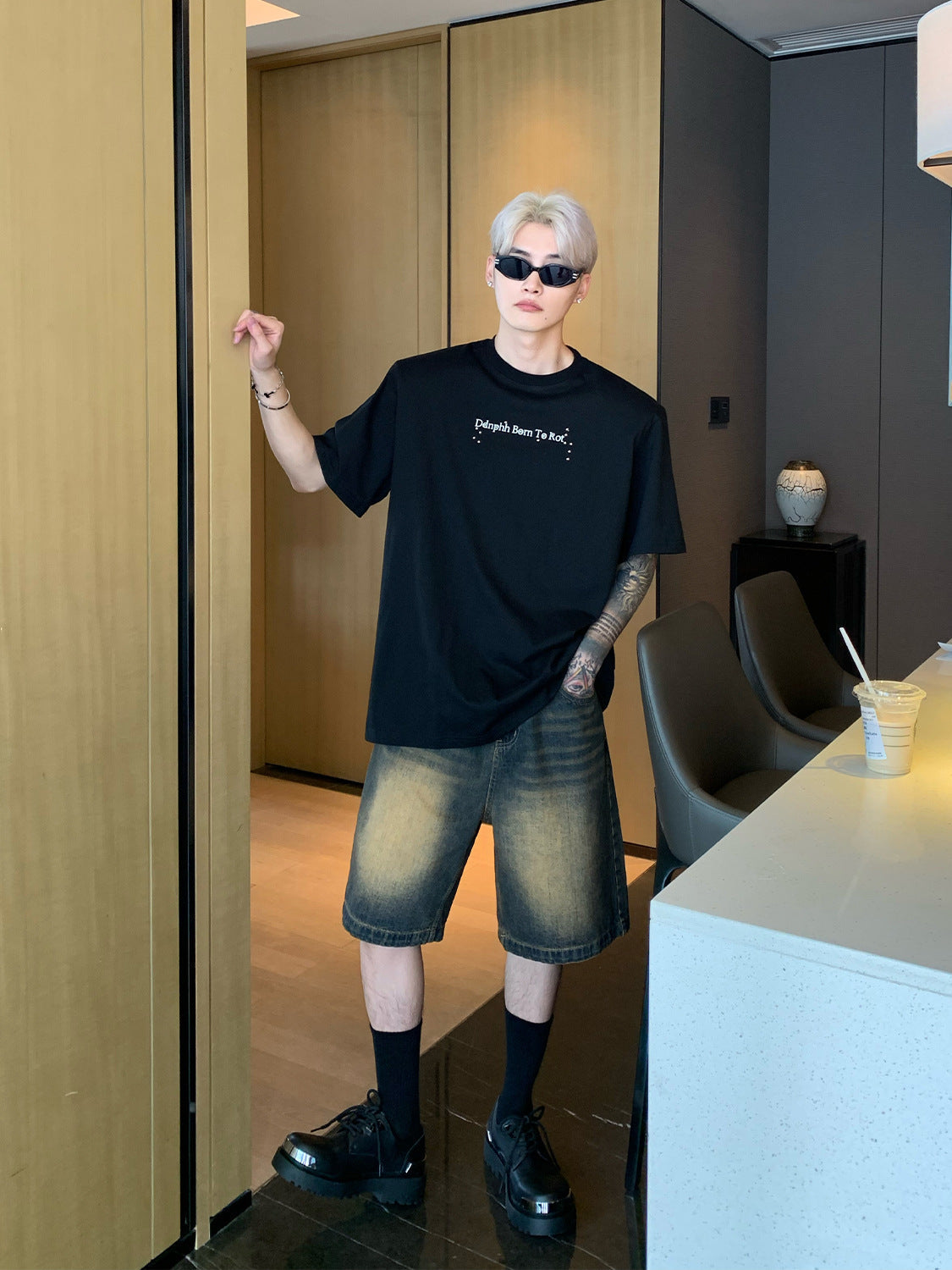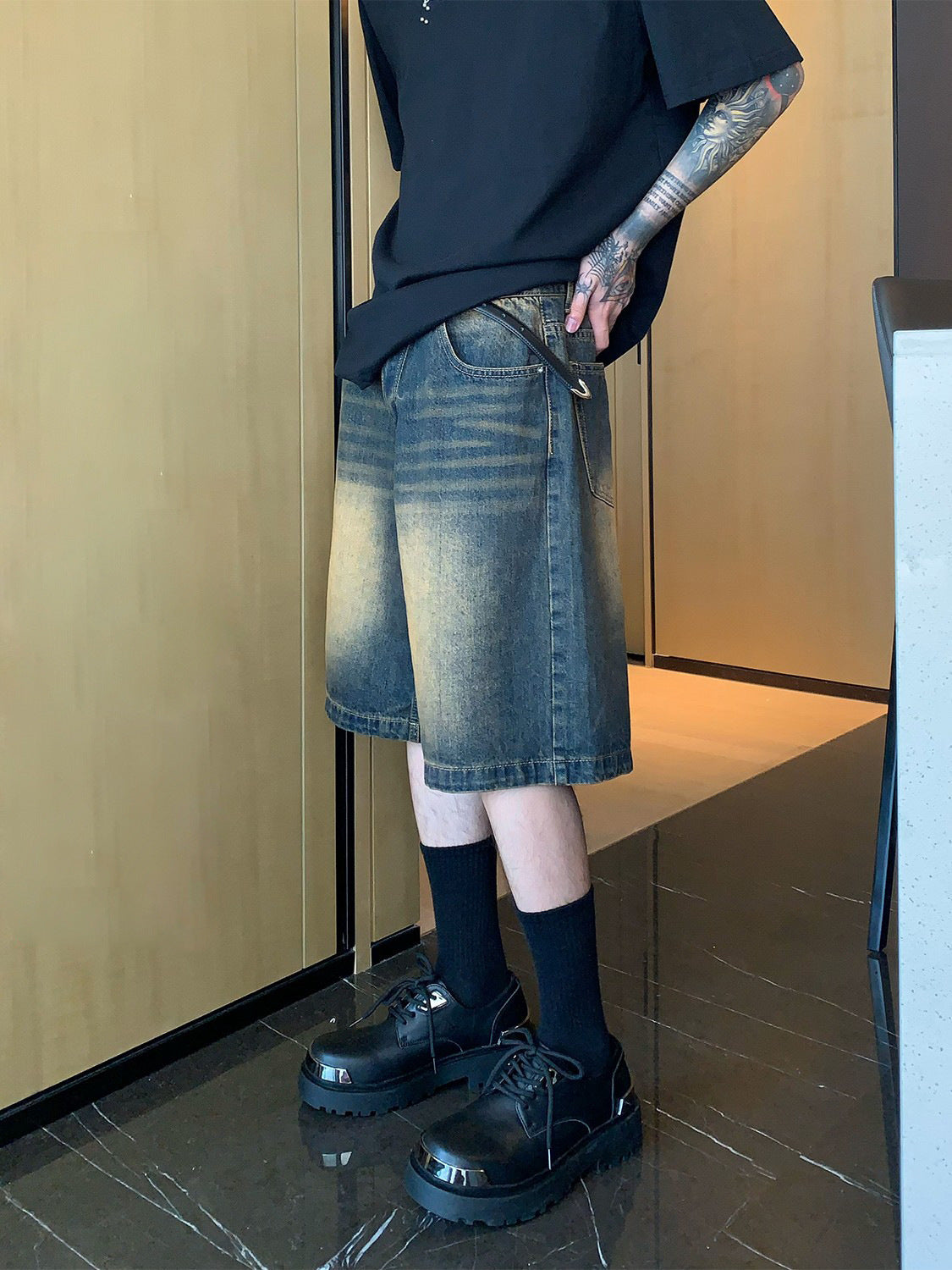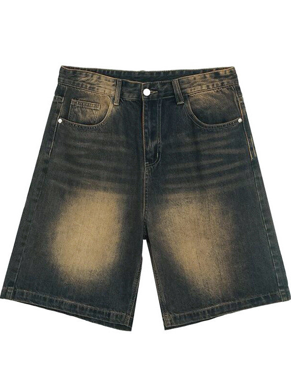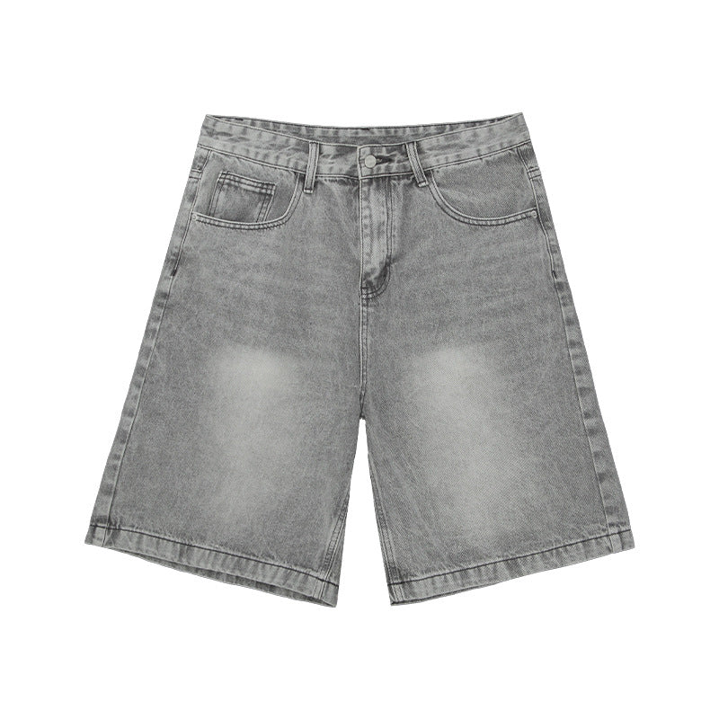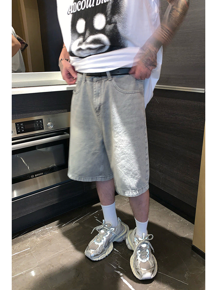 Small old washed high-end denim shorts men's summer new loose slim straight shorts retro pants