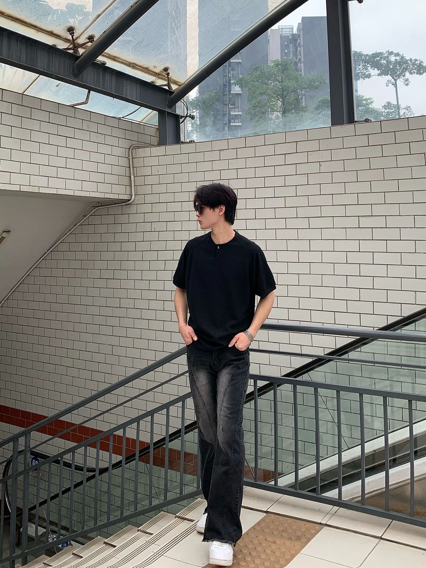 American letter print short-sleeved men's summer ins trendy brand all-match heavy cotton T-shirt handsome loose men's T-shirt