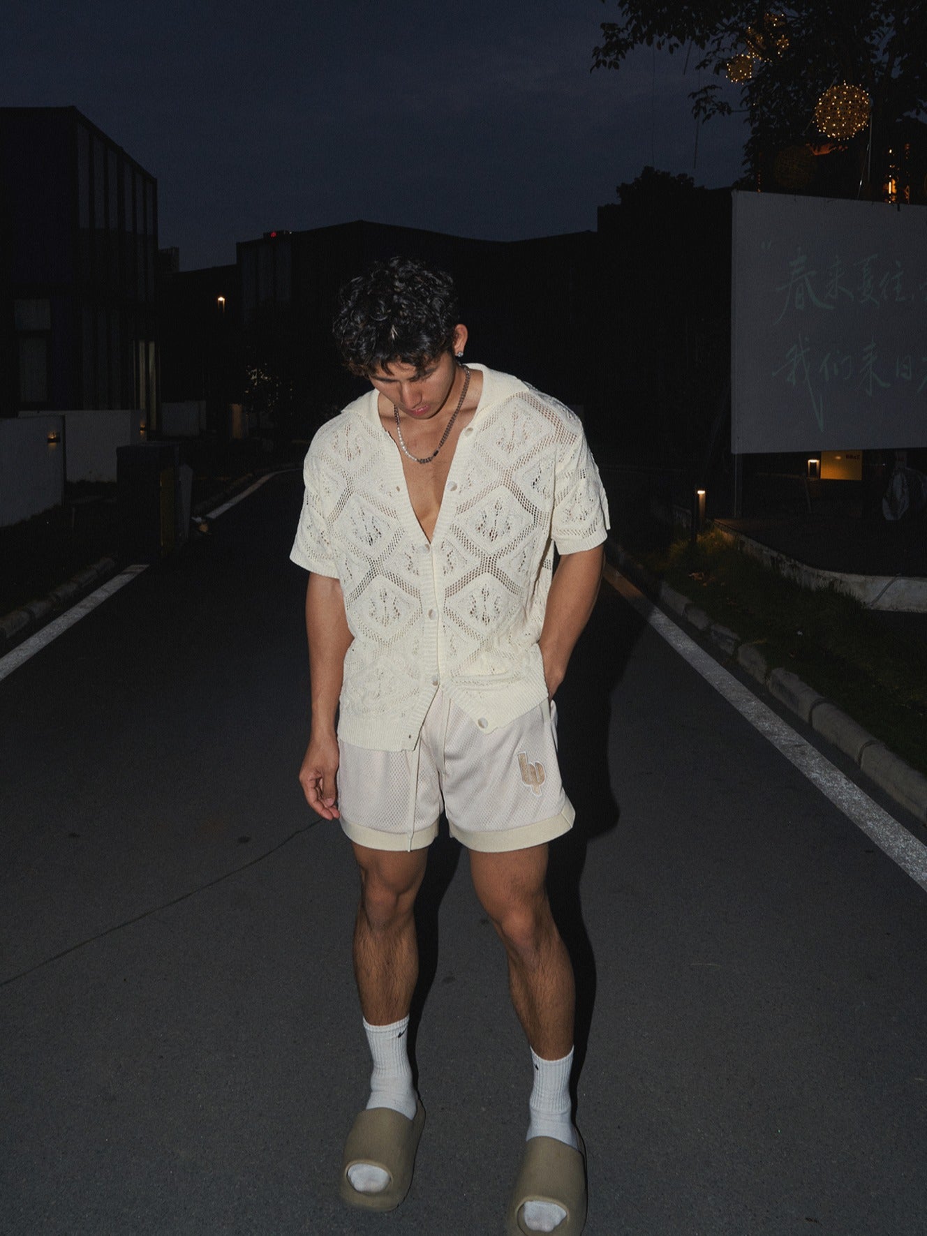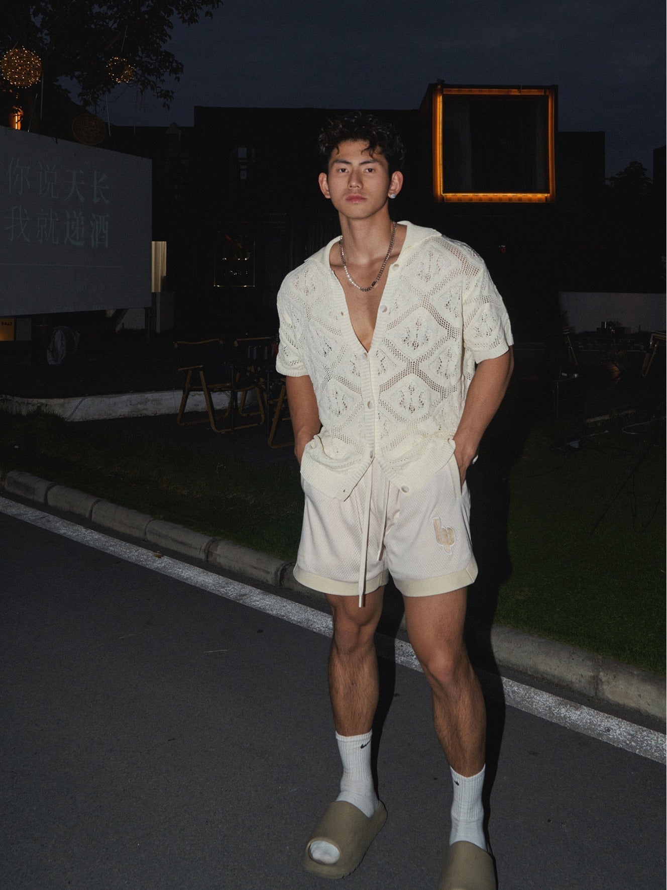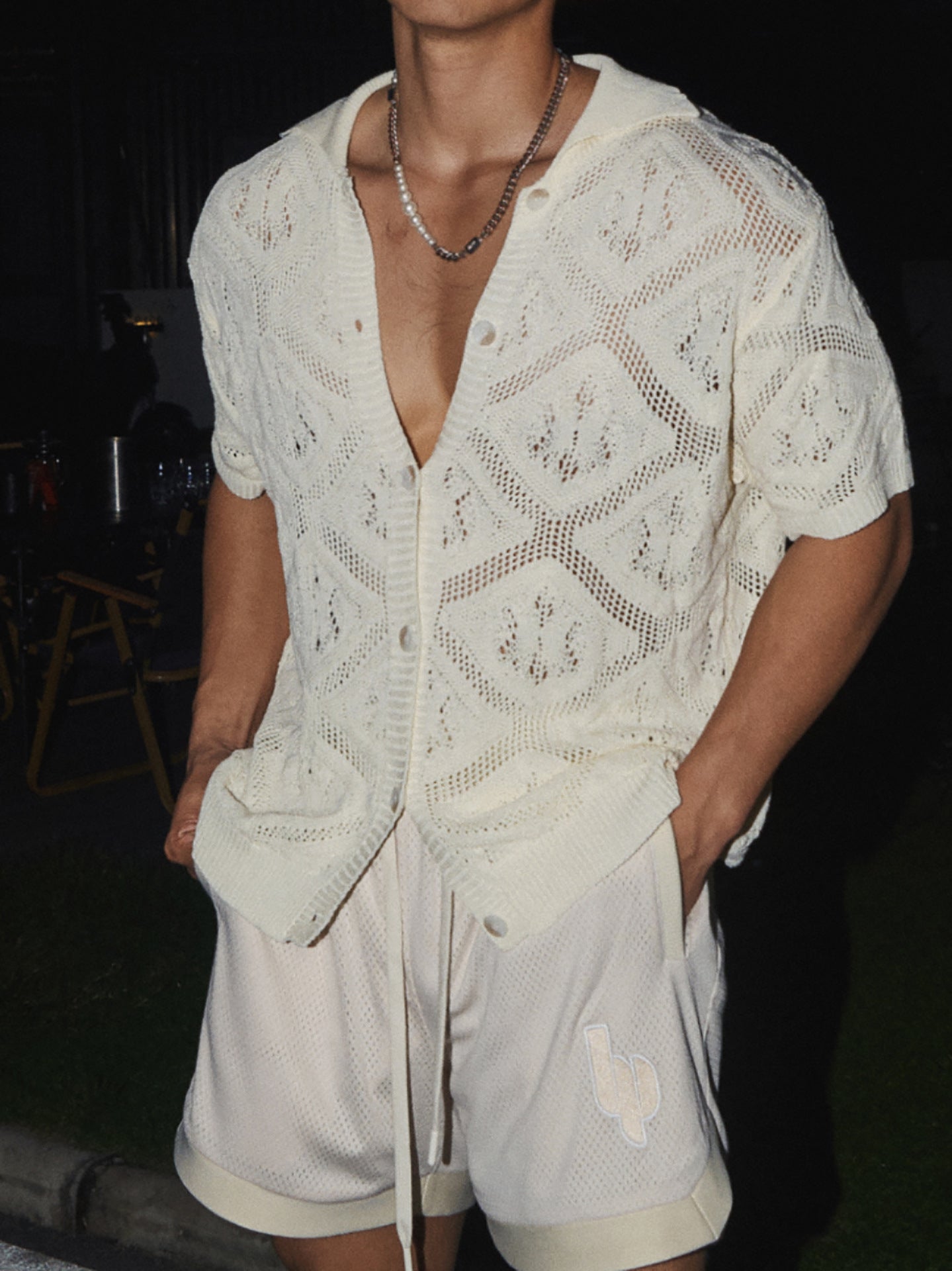American casual loose short-sleeved knitted T-shirt men's summer new hollow original simple design T-shirt top