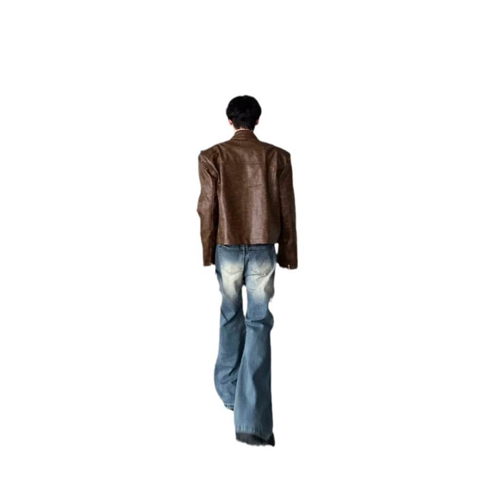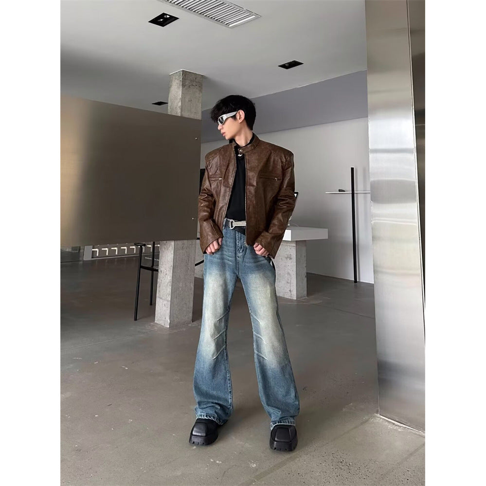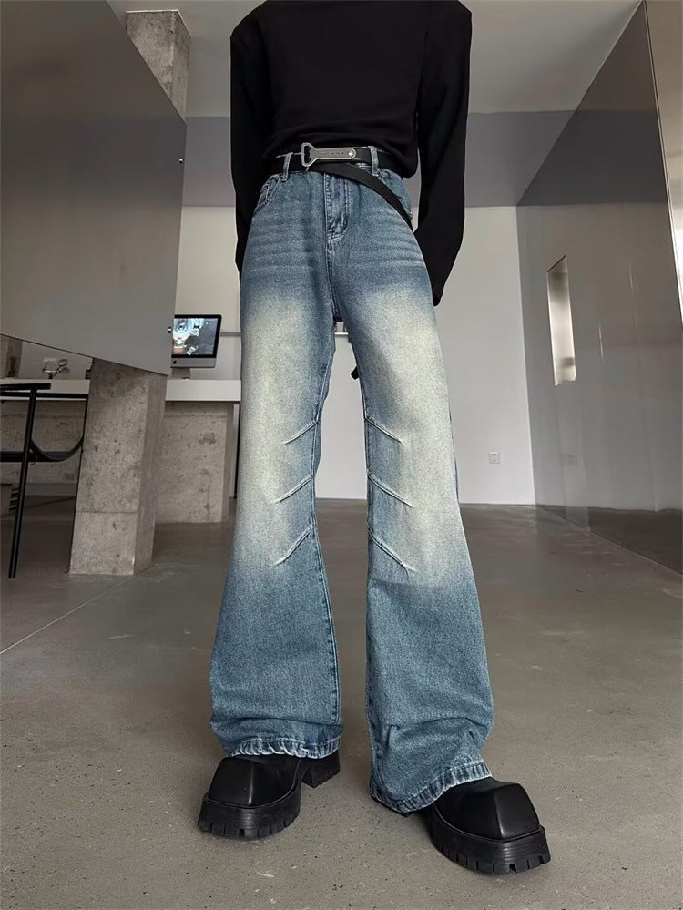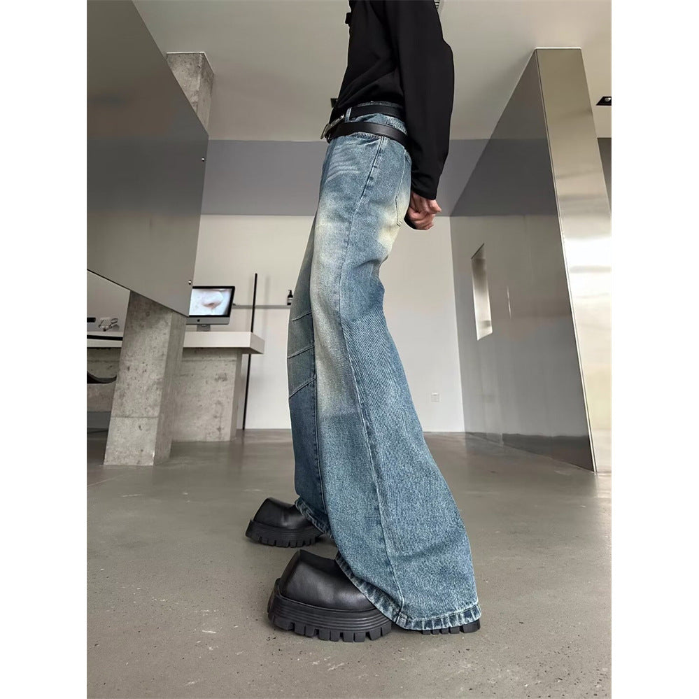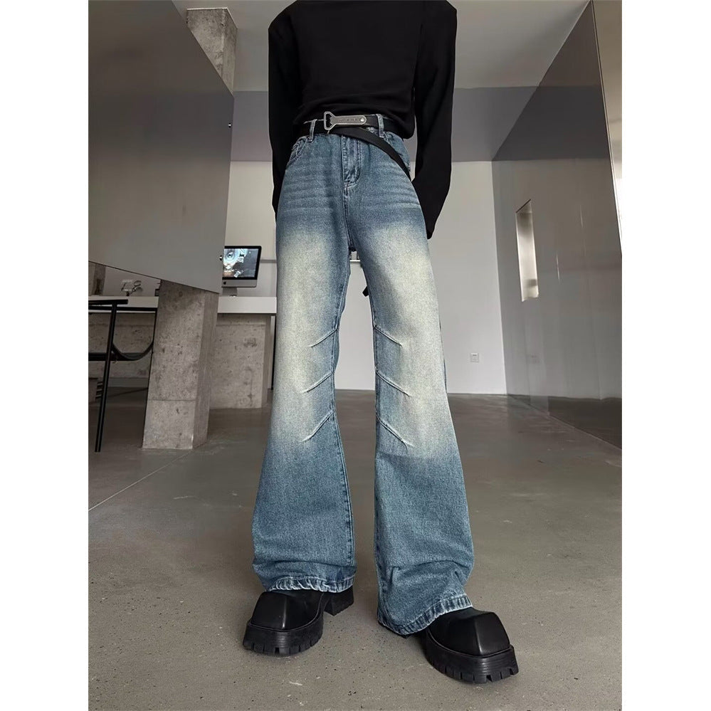 American niche washed pleated high street fashion jeans men's spring and summer new white wide-leg mopping long pants
