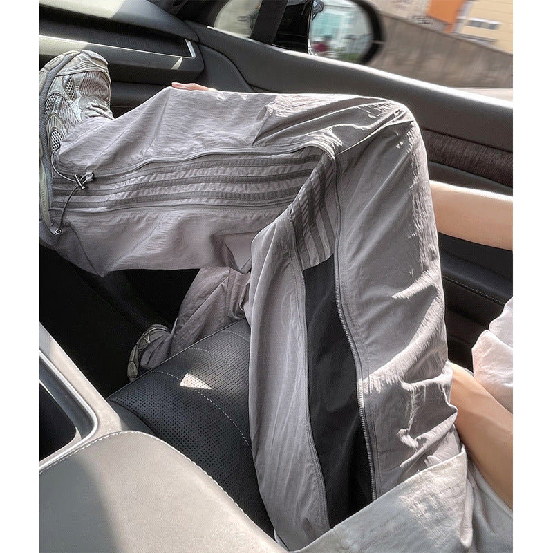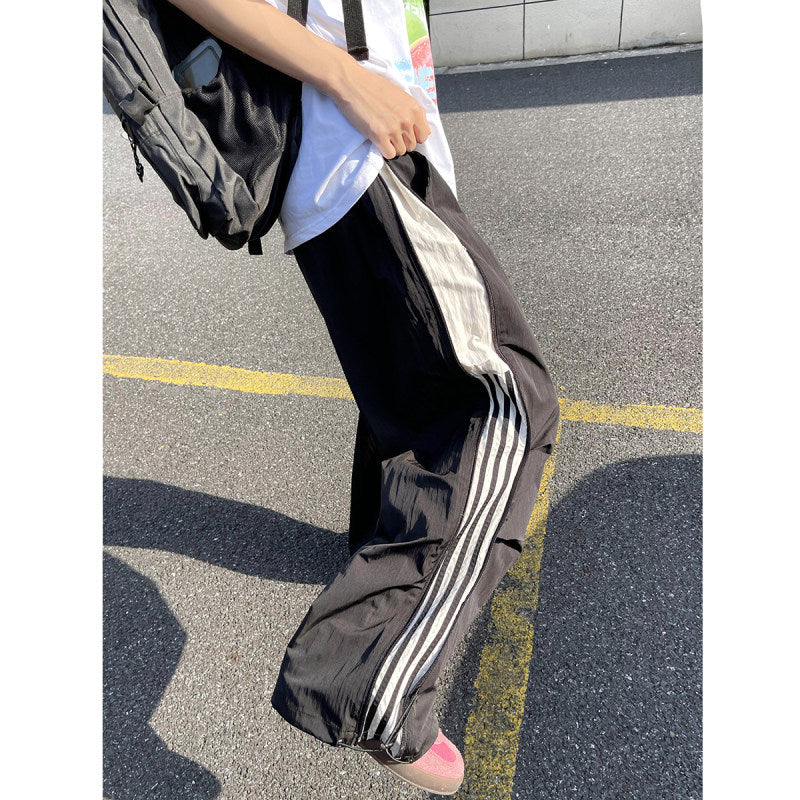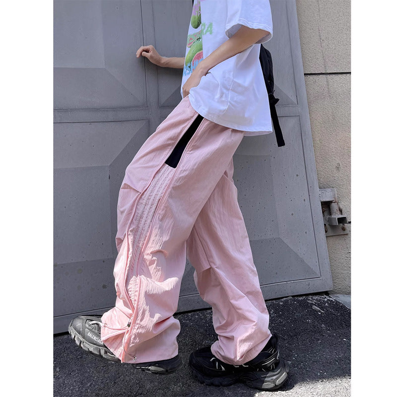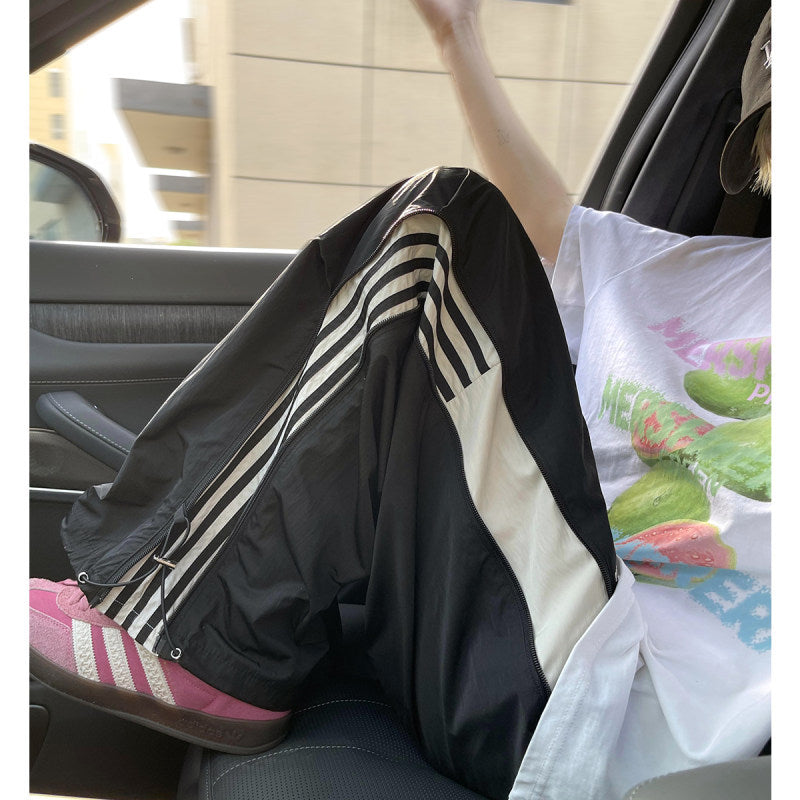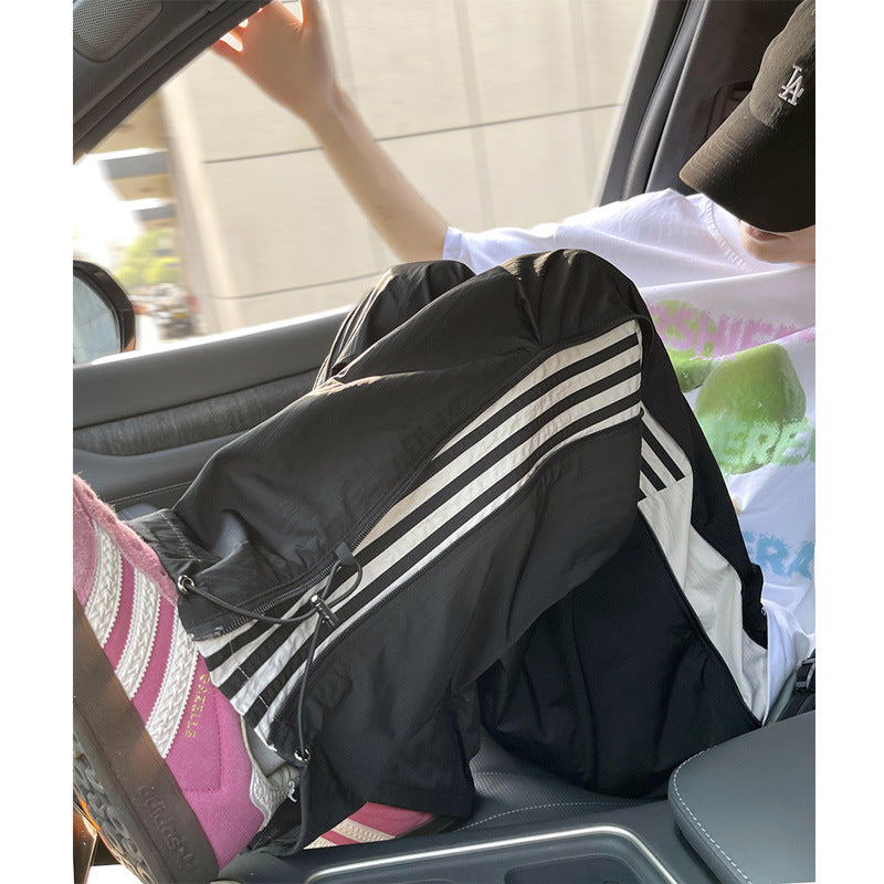 Contrast color dopamine wear quick-drying pants new summer American striped paratrooper pants couple side zipper wide-leg pants
