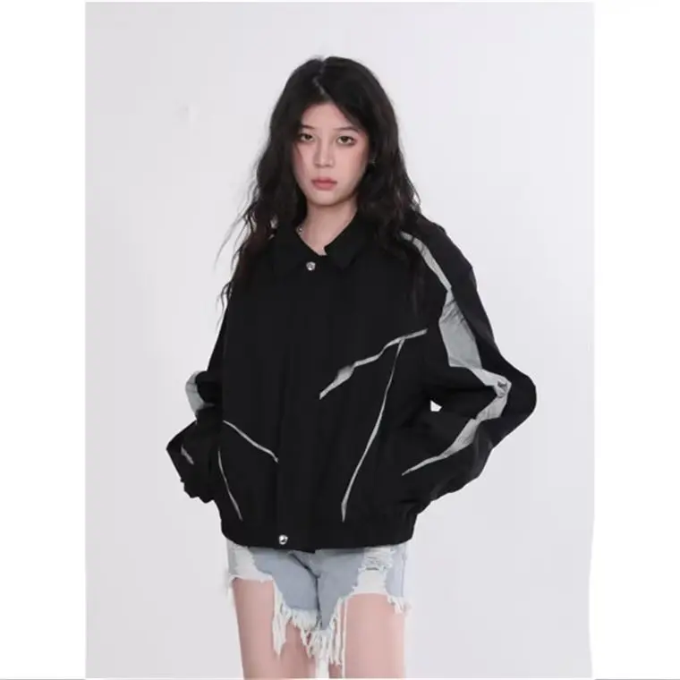 American Retro Baseball Jacket Men Women Knife Cut Design High Street Bomber Varsity Jackets Unisex Sports Zipper Outwear Autumn
