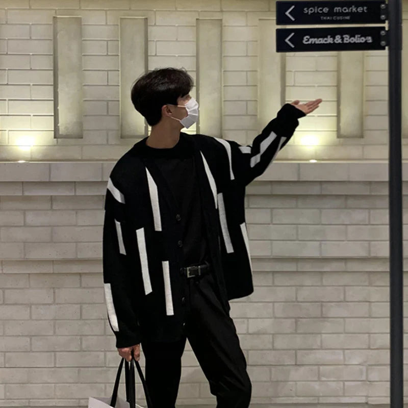 Autumn Clothing Men's Light Luxury Knitted Button Down Cardigan Sweater Long Sleeve Streetwear Patchwork Coat Fashion Knitwear