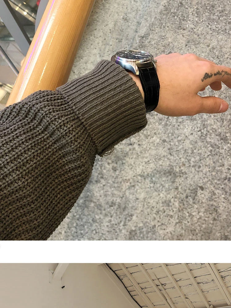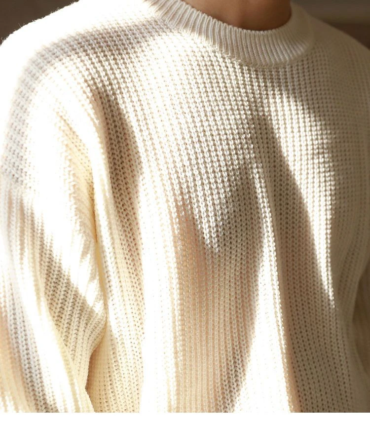 Autumn Mens Sweater Solid Color Loose Casual Bottoming Pullover Round Neck Japanese Warm Knitted Sweater