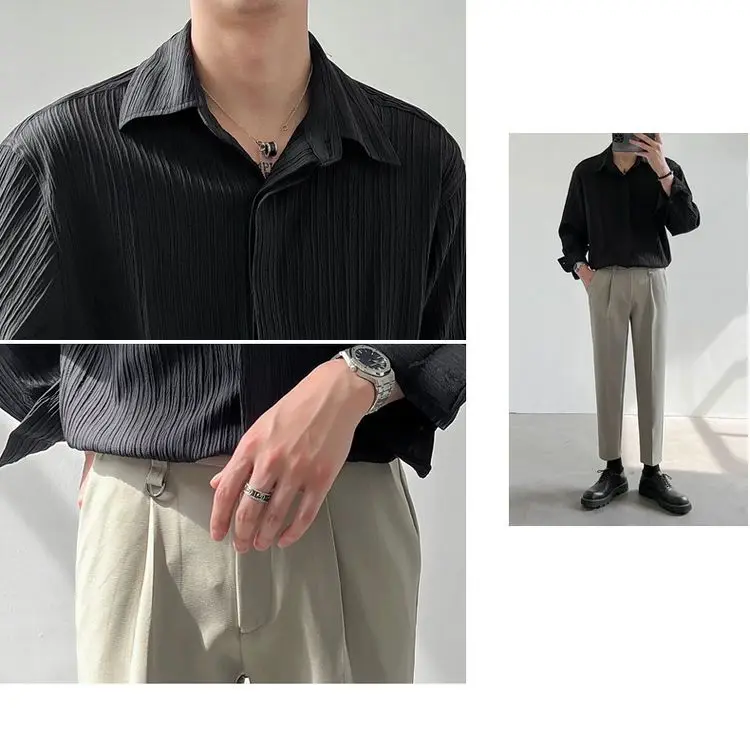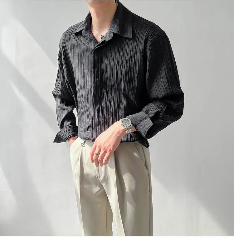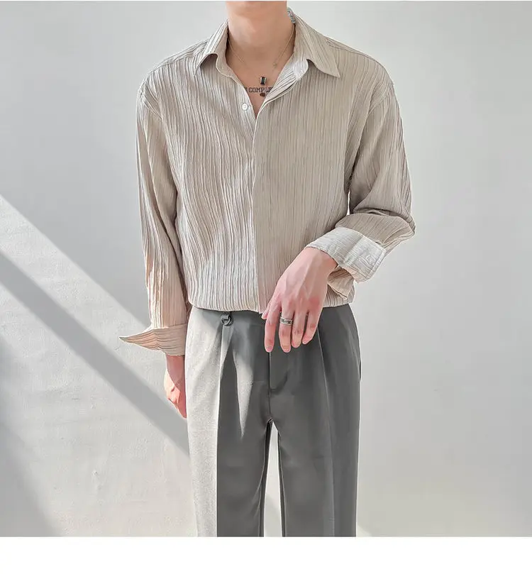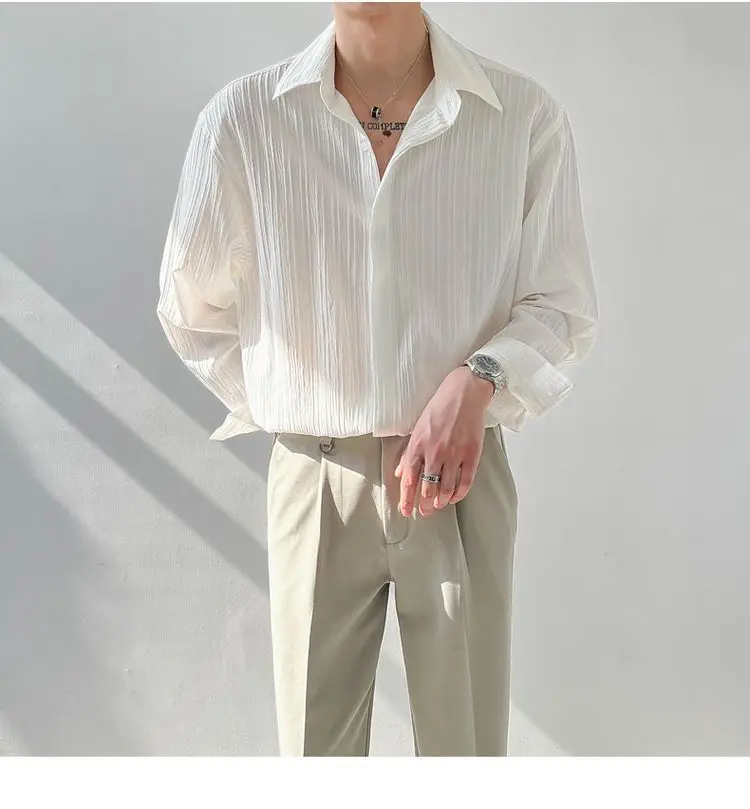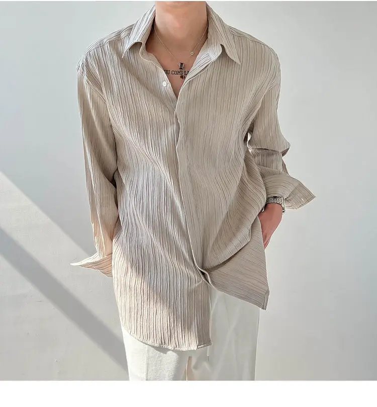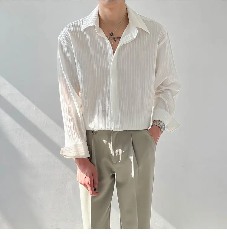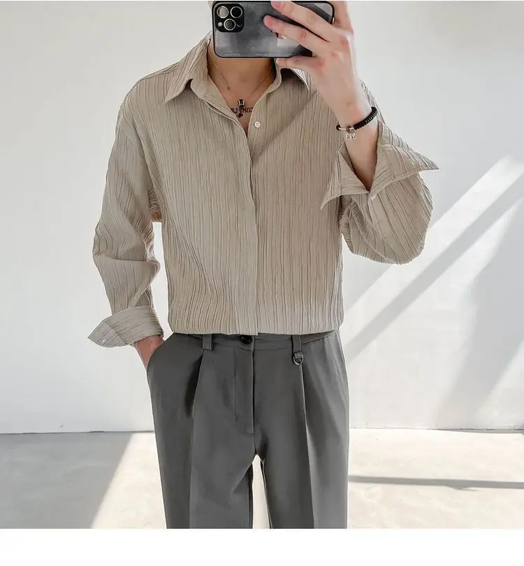 Autumn New Long Sleeve Shirt for Men Korean Fashion Designer Casual Solid Color Loose Simple Buttons Striped Shirt Men