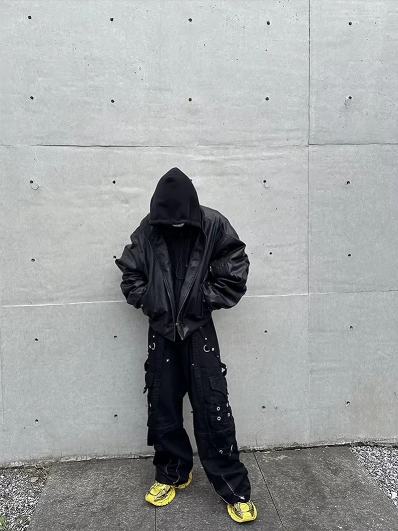 Autumn Winter Oversized Cool Black Thickened Warm Pu Leather Bomber Jacket Men Hood Luxury Designer Fake 2 Clothes