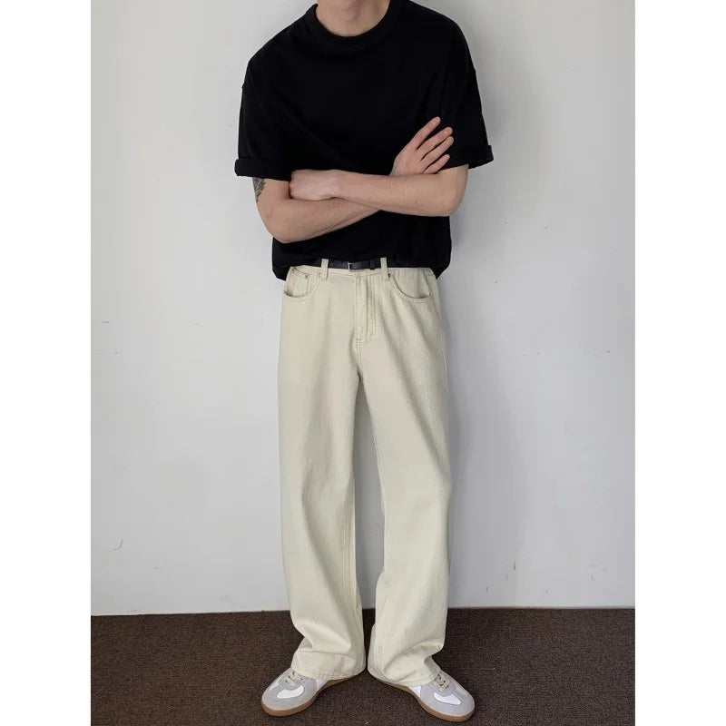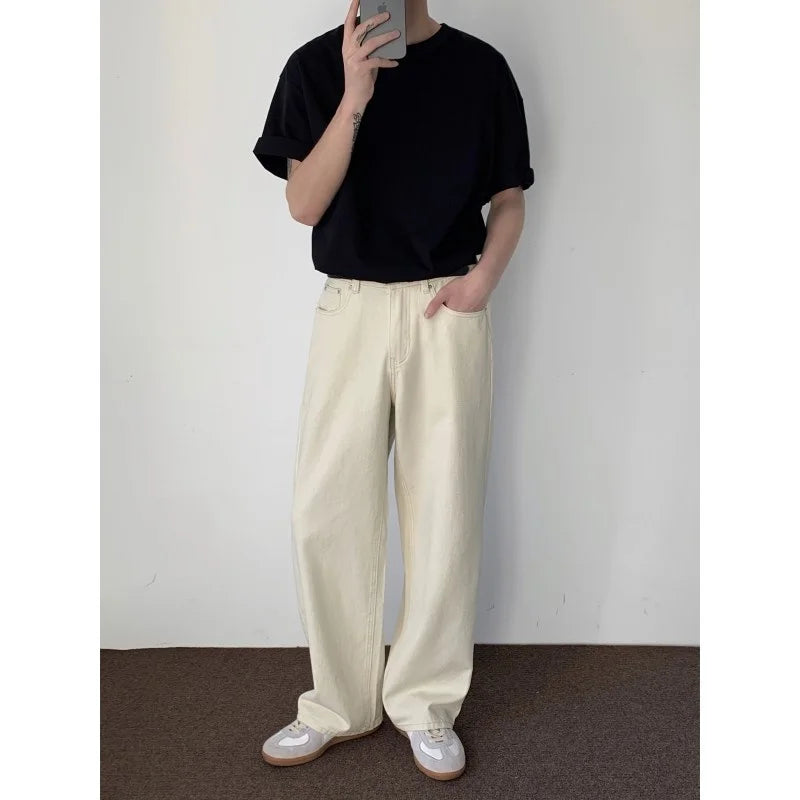 Baggy Beige Jeans Men Fashion Casual Oversized Wide Leg Jeans Men Streetwear Korean Loose Straight Denim Pants Mens Trousers