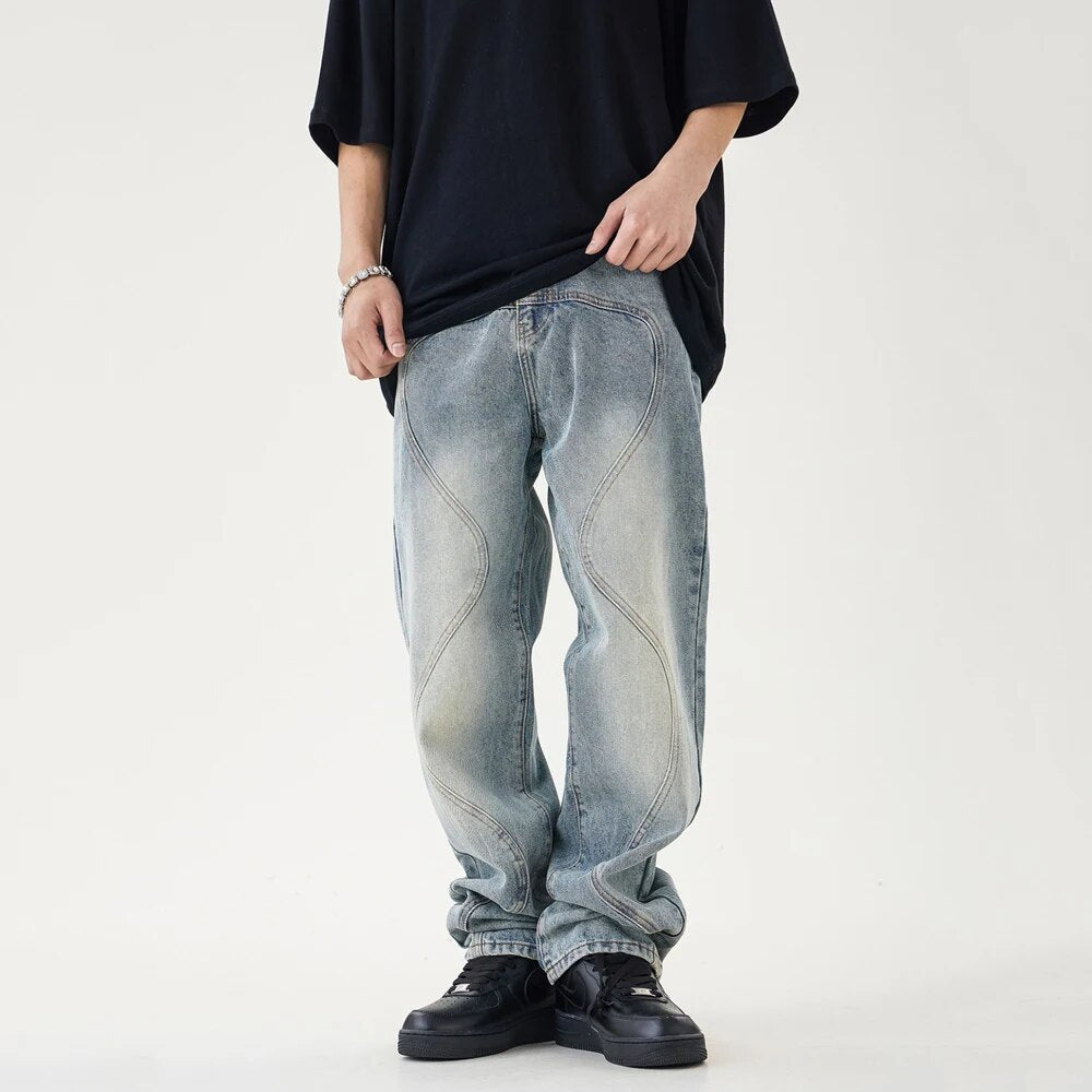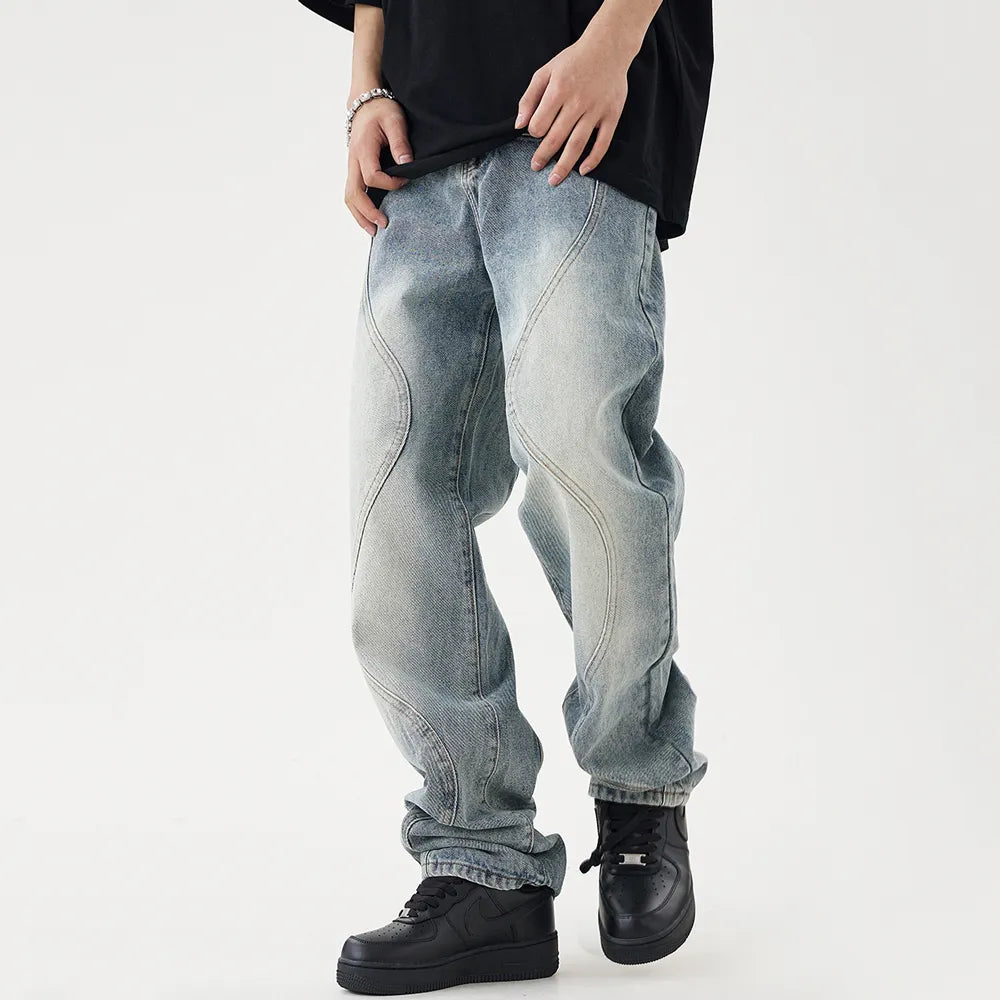 Baggy Jeans Men Straight-leg Vaqueros Trousers Streetwear Fashion Casual Simple Hip Hop High Street Distressed Y2k Denim Pants