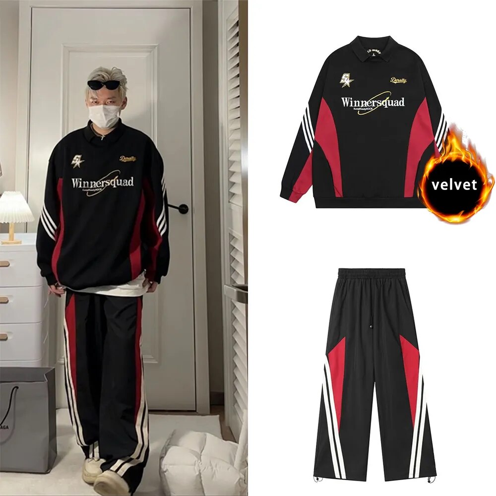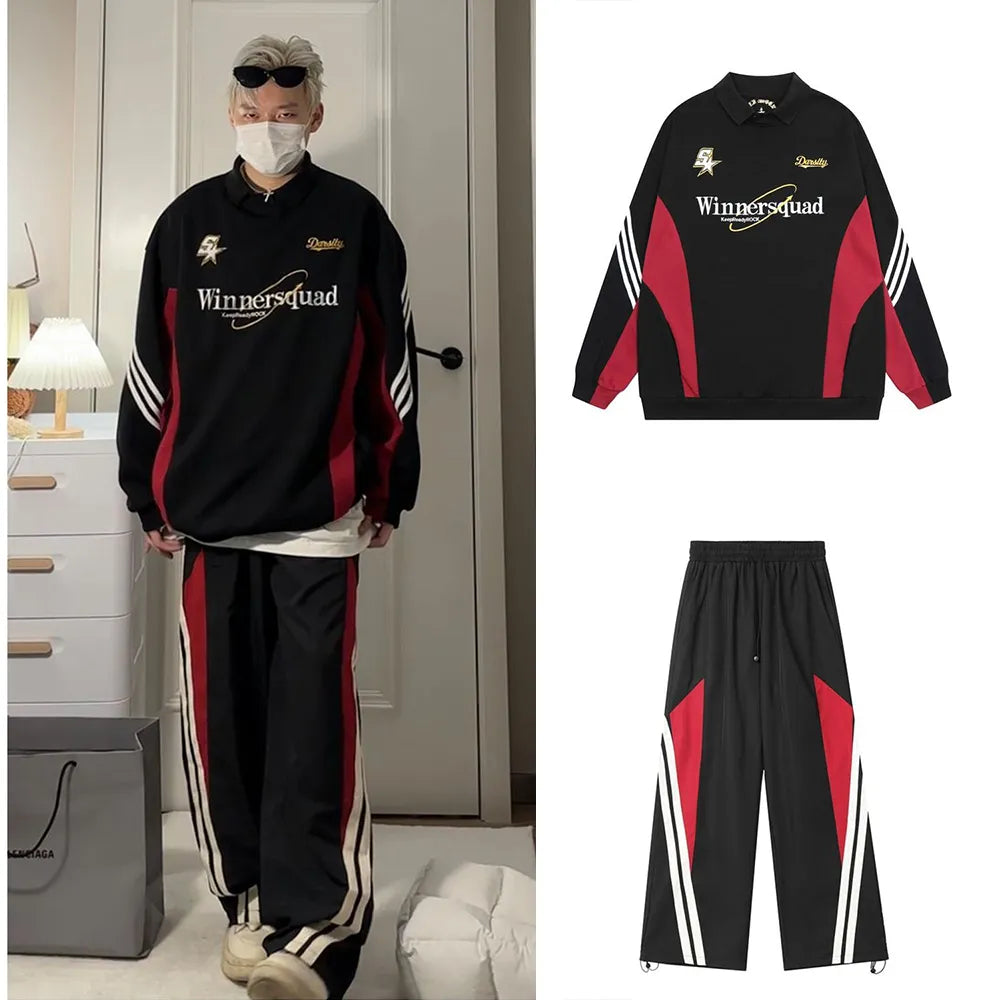Baggy Two Piece Set for Men Parachute Wide Leg Pants Sweatshirts Outfit Tracksuit Men Polo Vintage Casual Streetwear