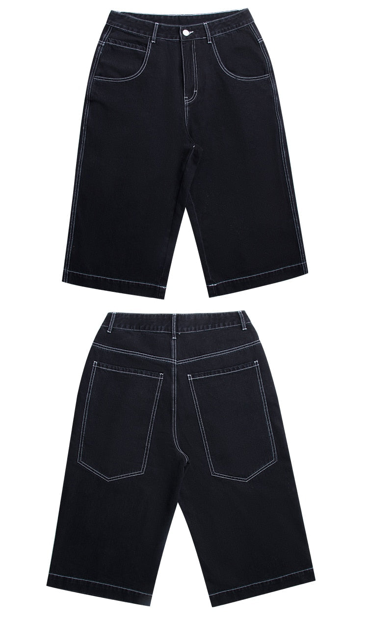 Bermuda Shorts For Men Hip Hop Baggy Fit Short Homme Pantalones Cortos De Hombre Summer Wide Leg Loose Cropped Denim Pants Jeans