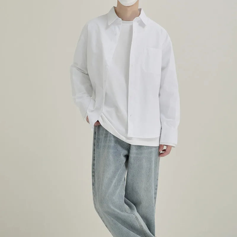 Blue White Shirt Men Fashion Social Mens Dress Shirt Korean Loose Long Sleeve Shirt Mens Office Formal Shirt Male Casual Shirts