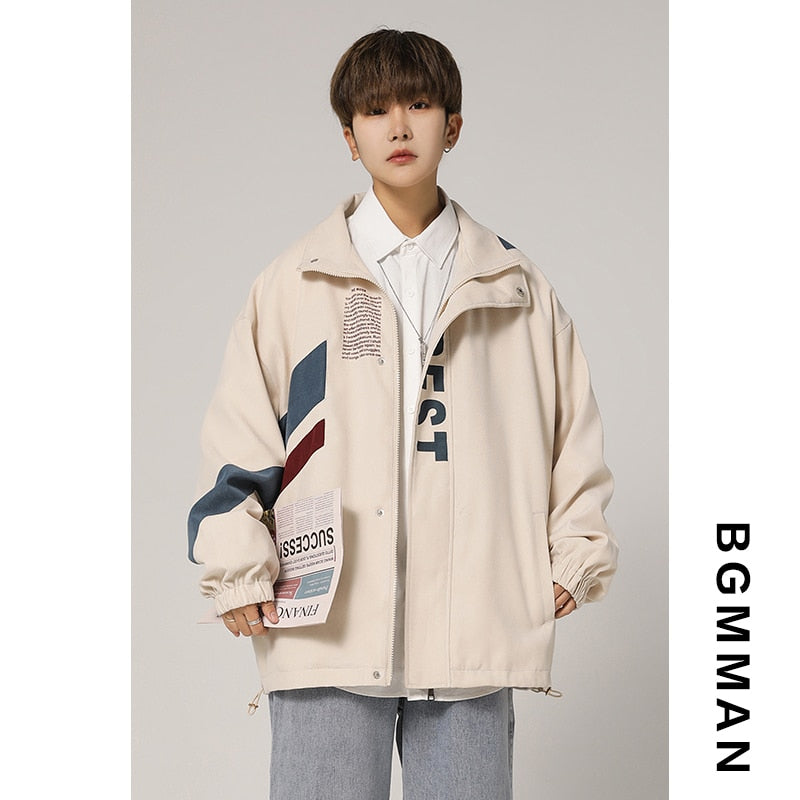 Bomber Jacket Men Letter Printed Outerwear Streetwear Fashion Plus Size Loose Windbreaker Coat Male Clothing 5XL