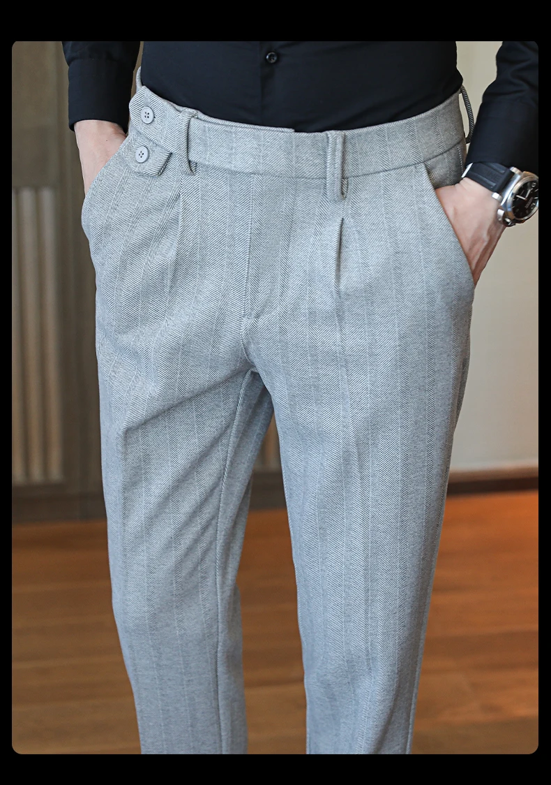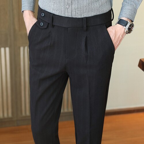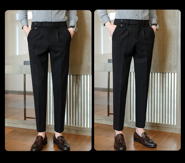 British Style Winter Men Thick Woolen Cloth Suit Pants Casual Straight Drape Korean Fashion Business Trousers Male Clothing