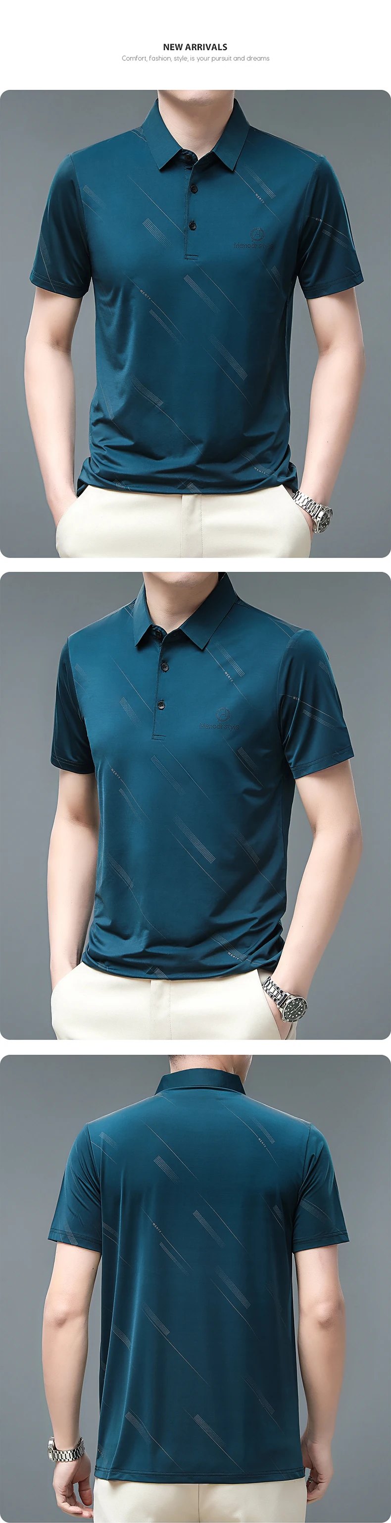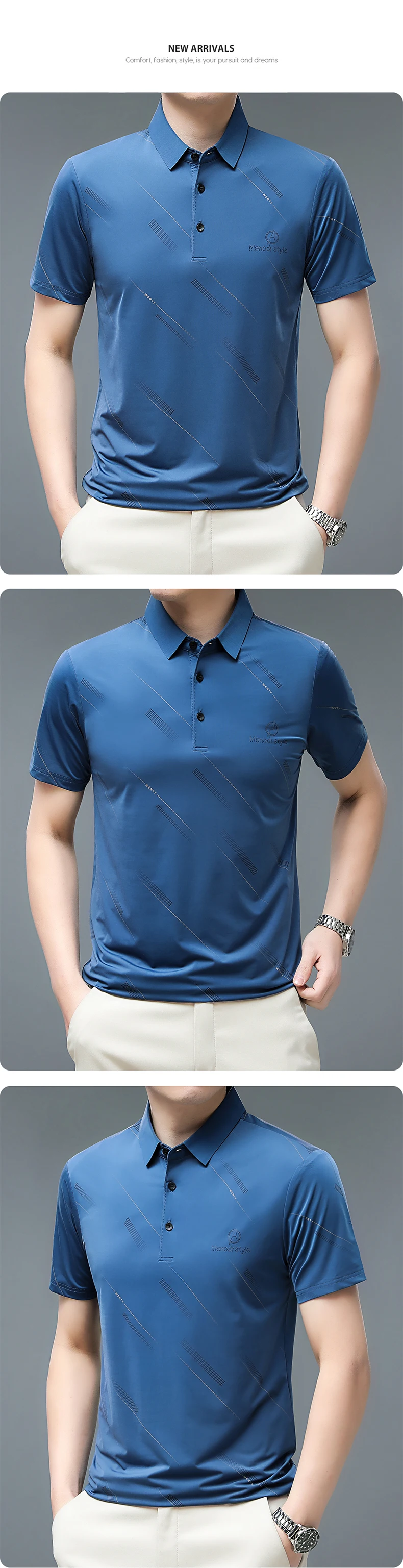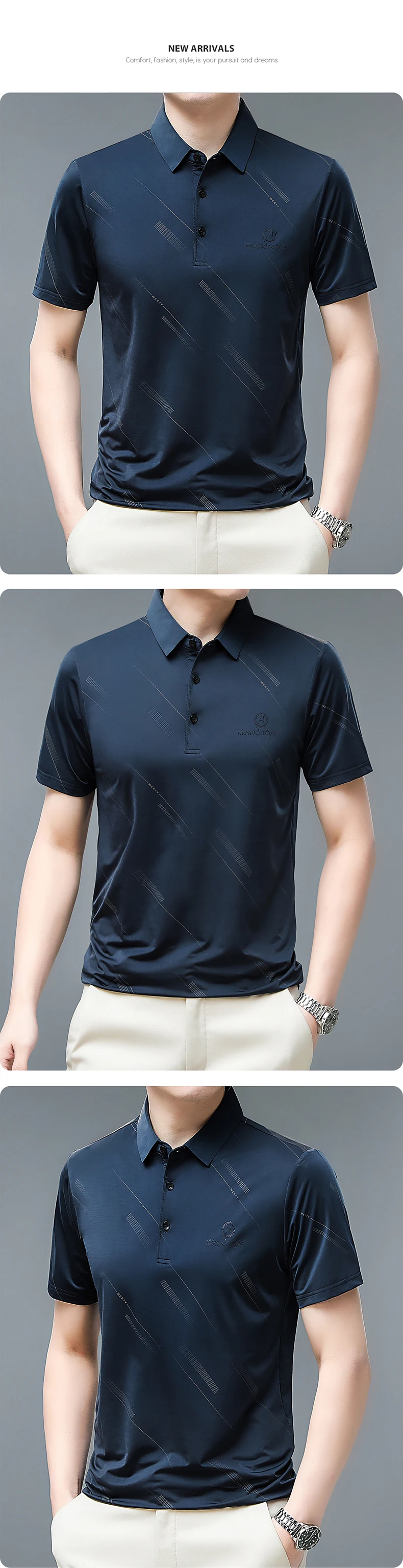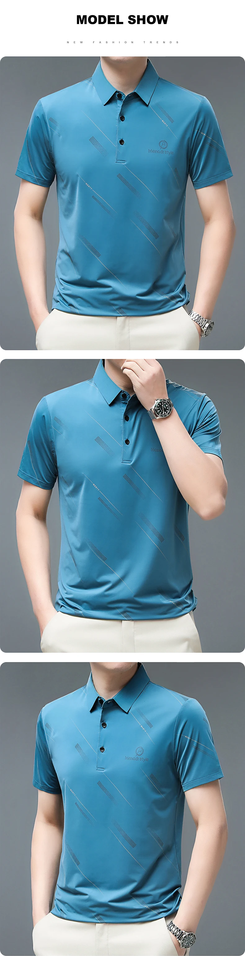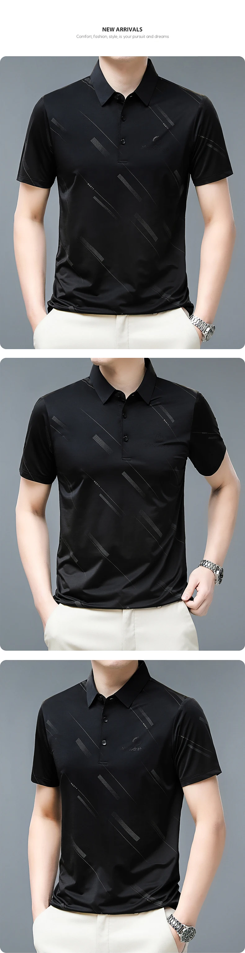 Summer T Shirt Men Clothing Striped Print Thin Graphic T Shirts Business Casual Daily Work Turn Down Collar Men T Shirt