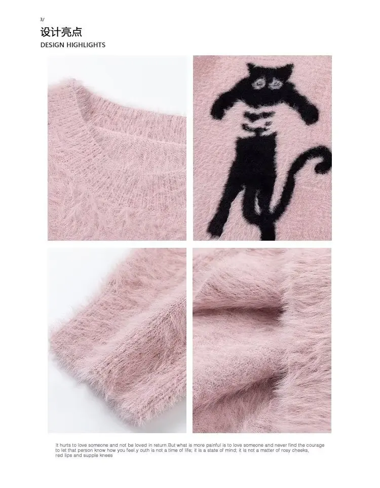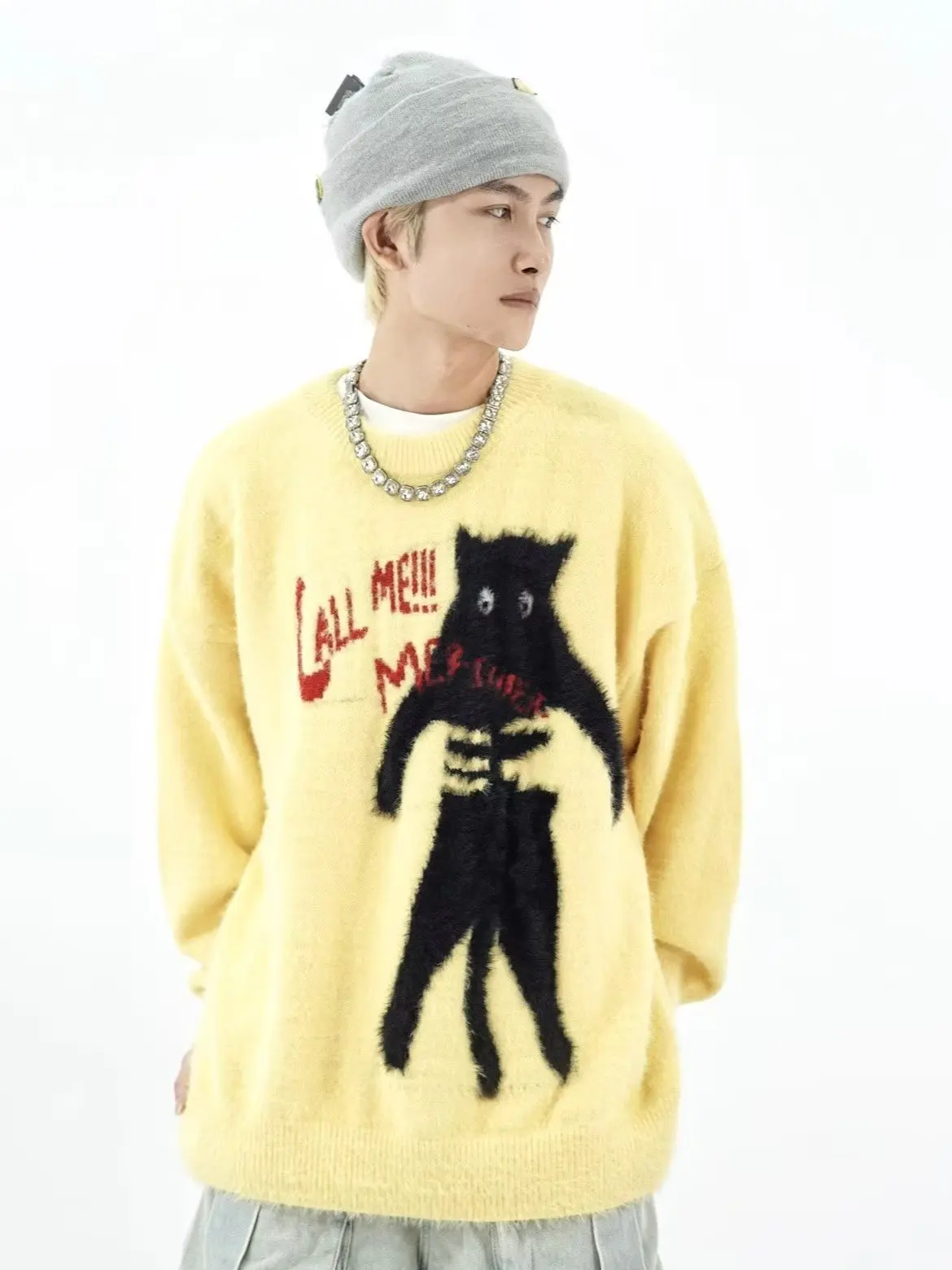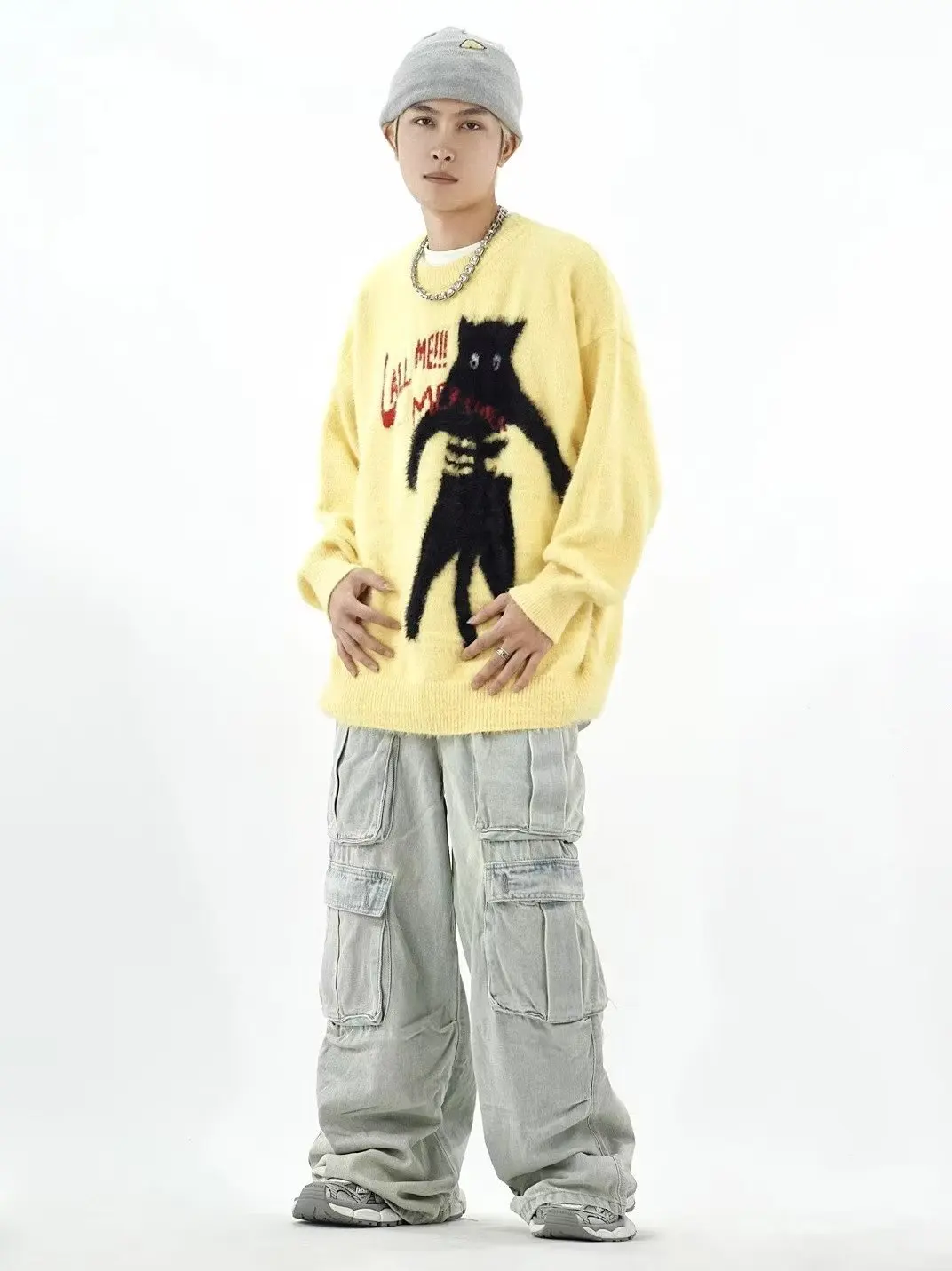 Cartoon Knitting Sweater Men Women Loose Knitted Jumpers Autumn Streetwear Harajuku Cat Pattern College Knit Pullovers Couple