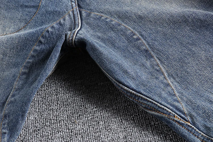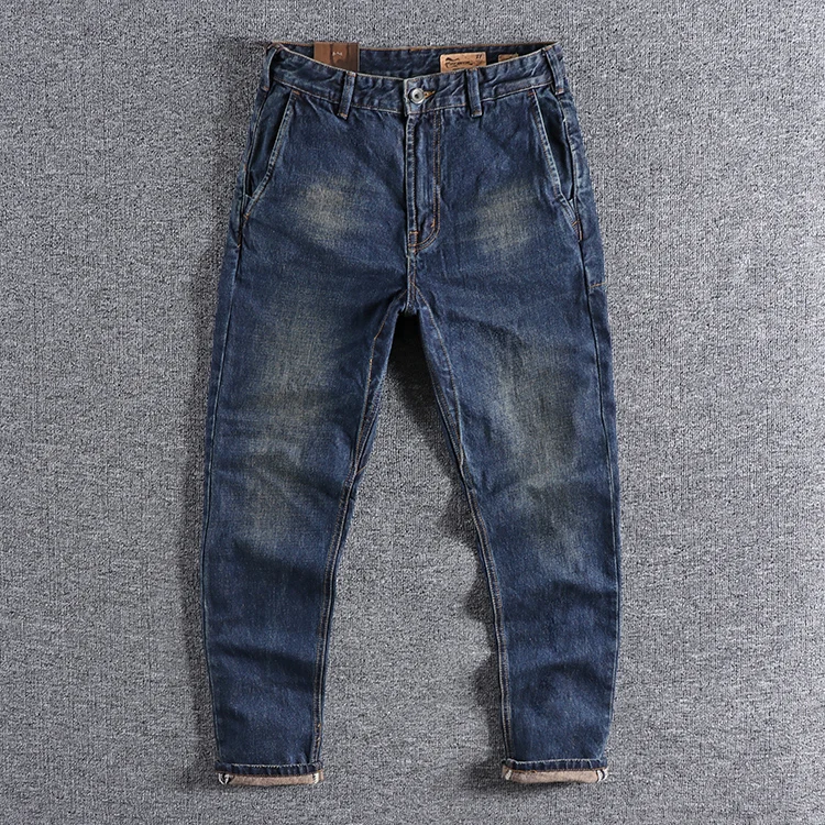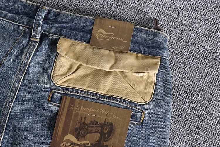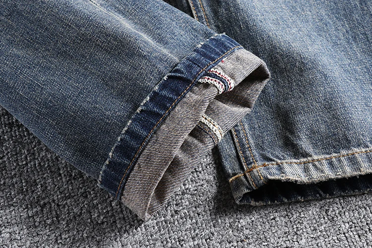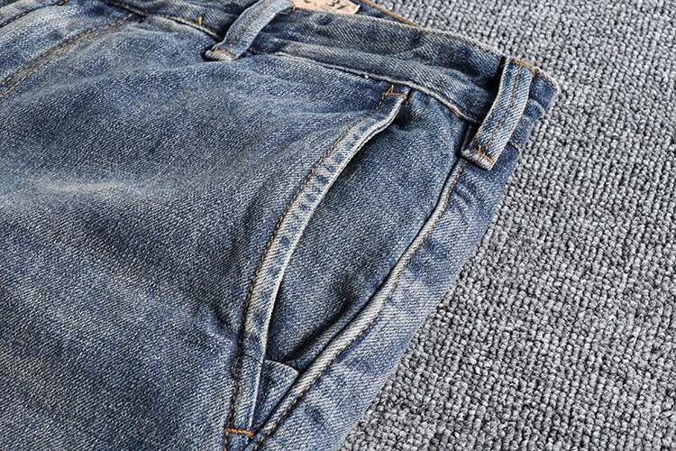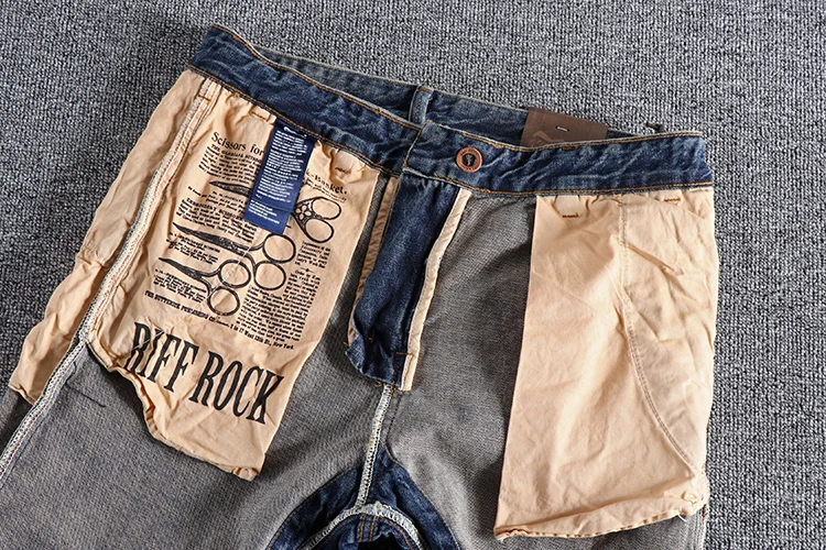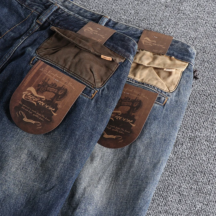 Contrast color pocket autumn American tooling retro light-colored washed youth long pants slim jeans men