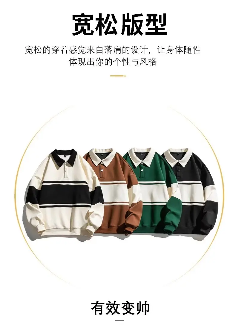 Contrast Color Sweatshirts Men All-match Loose Striped Fashion Turn-down Collar Comfortable Warm Daily Streetwear Chic Leisure