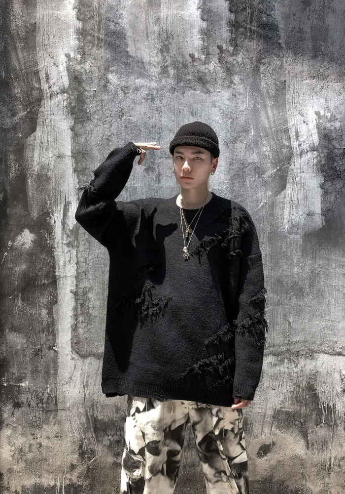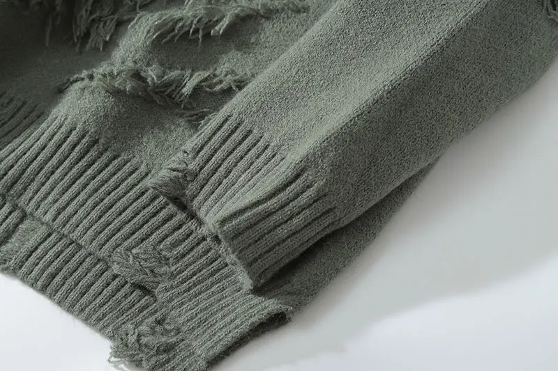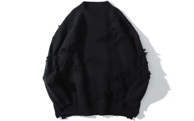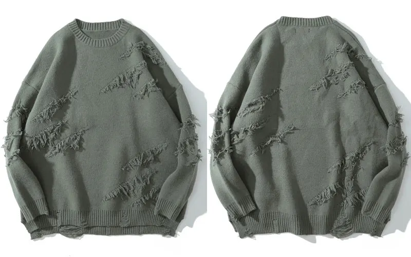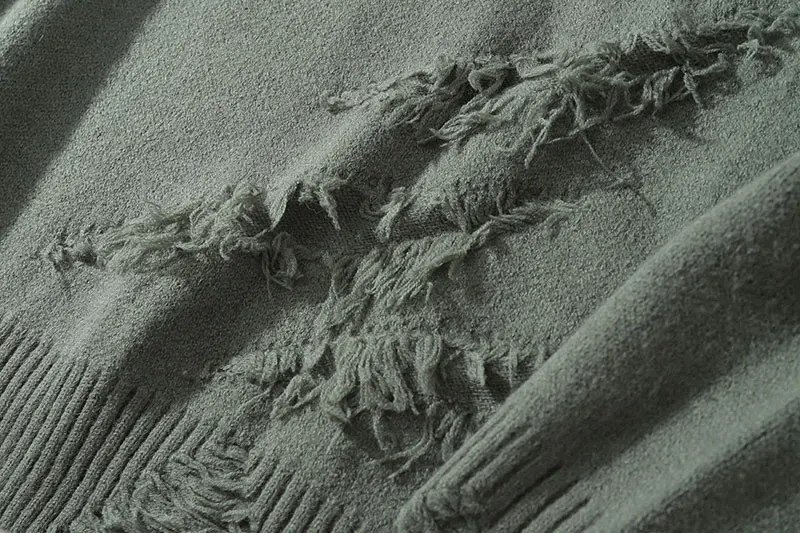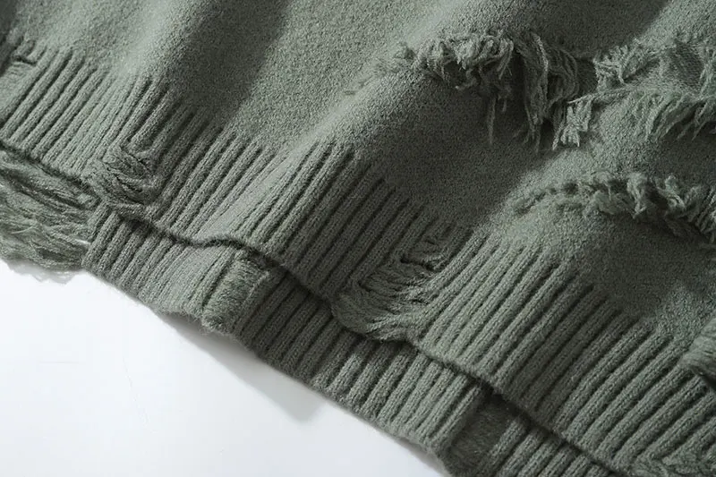 Distressed Destroyed Knitted Jumper Sweaters Streetwear Men Hip Hop Harajuku Fashion Casual Pullover Knitwear Tops