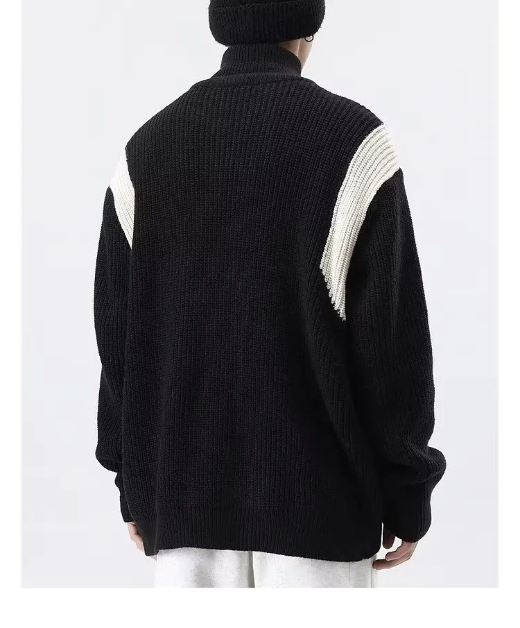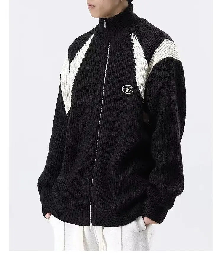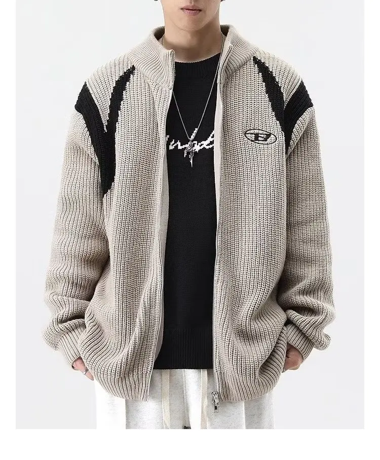 Double Zipper Cardigan Sweater Men Women Retro Loose Knitted Jumpers Autumn Streetwear Harajuku Street Color Block Jacket New