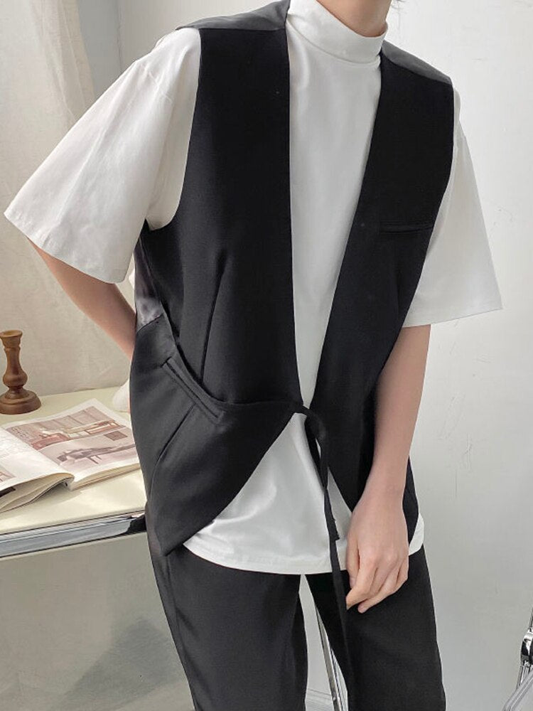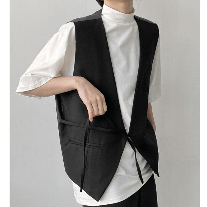Women Loose Fit Black Brief Casual Big Size Bandage Vest New V-collar Sleeveless Fashion Tide Spring Autumn