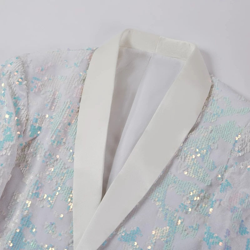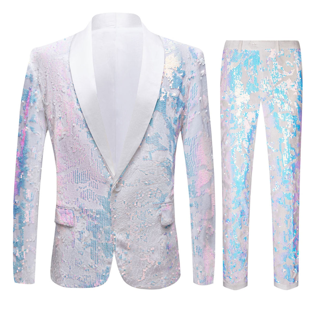 European Size (Blazer + Trousers) Men's Suit Fashion White Velvet Sequin Italian Style Wedding Wedding Groom Dress 2 Piece Set