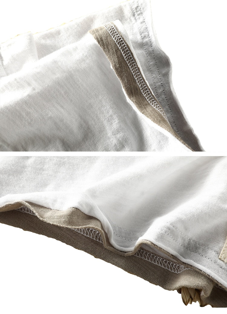 Fake Two T-shirts for Men Retro Fashion Summer Cotton Solid Color Short Sleeve Tops Male Casual Simple Thin White Tee Clothing