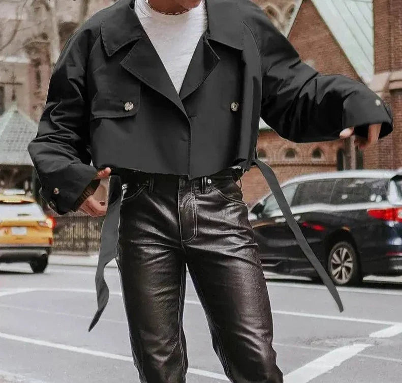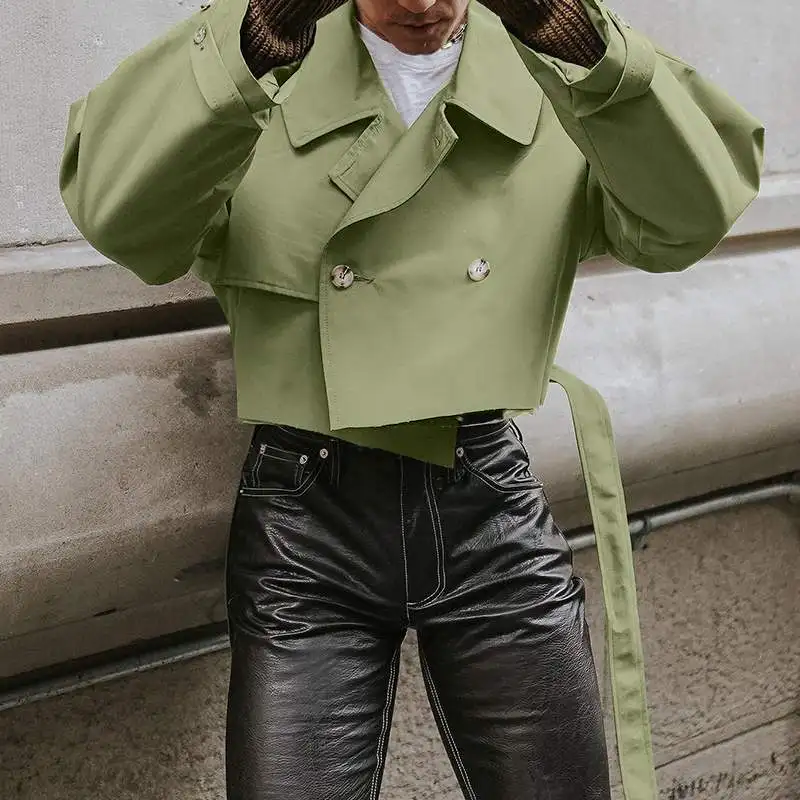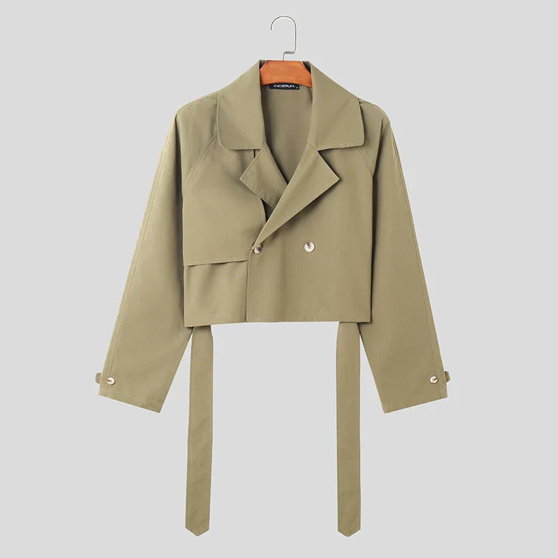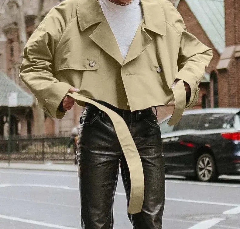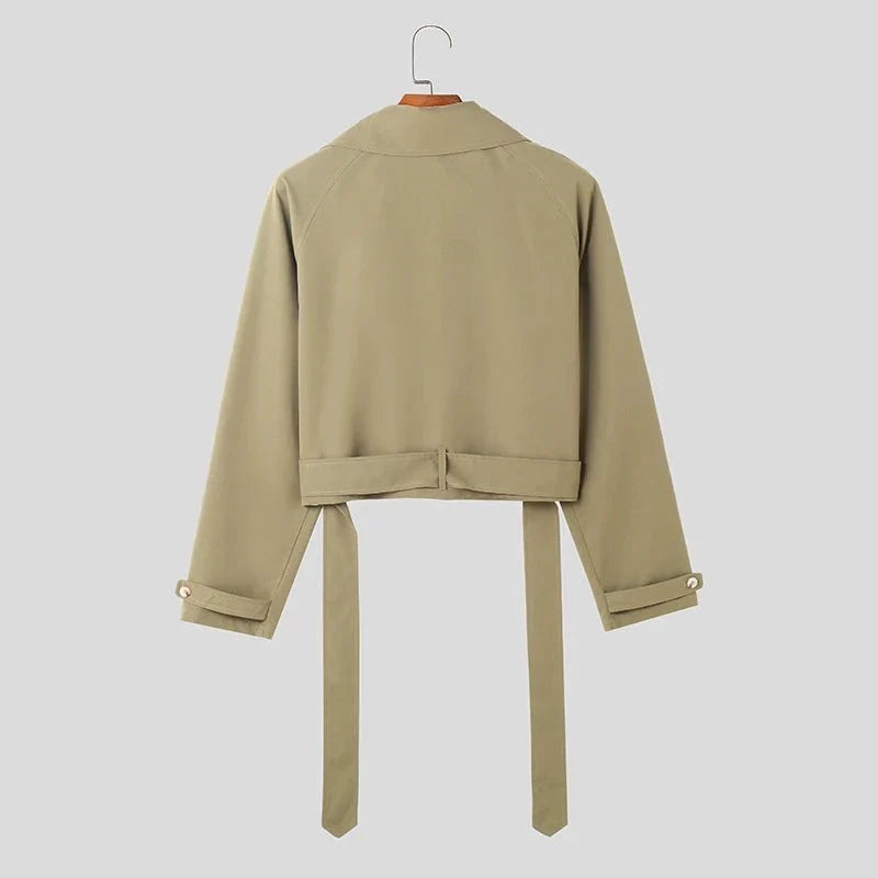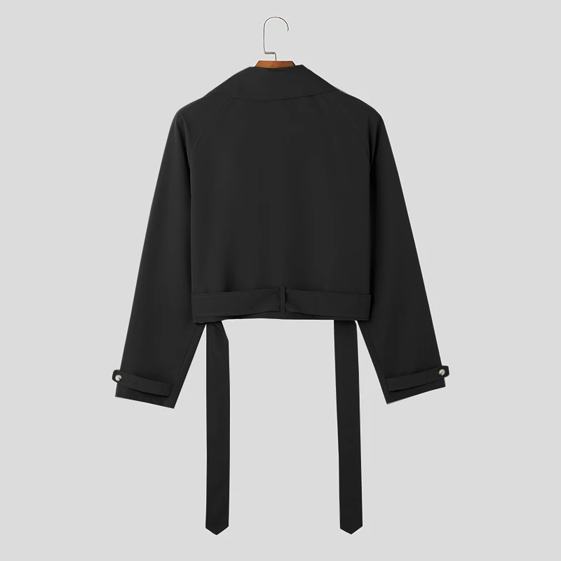 Fashion Men Jackets Lapel Long Sleeve Solid Color Streetwear Male Crop Coats Loose Casual Jackets With Belt S-5XL