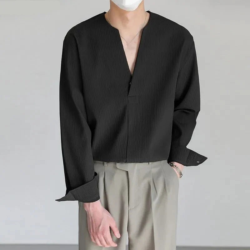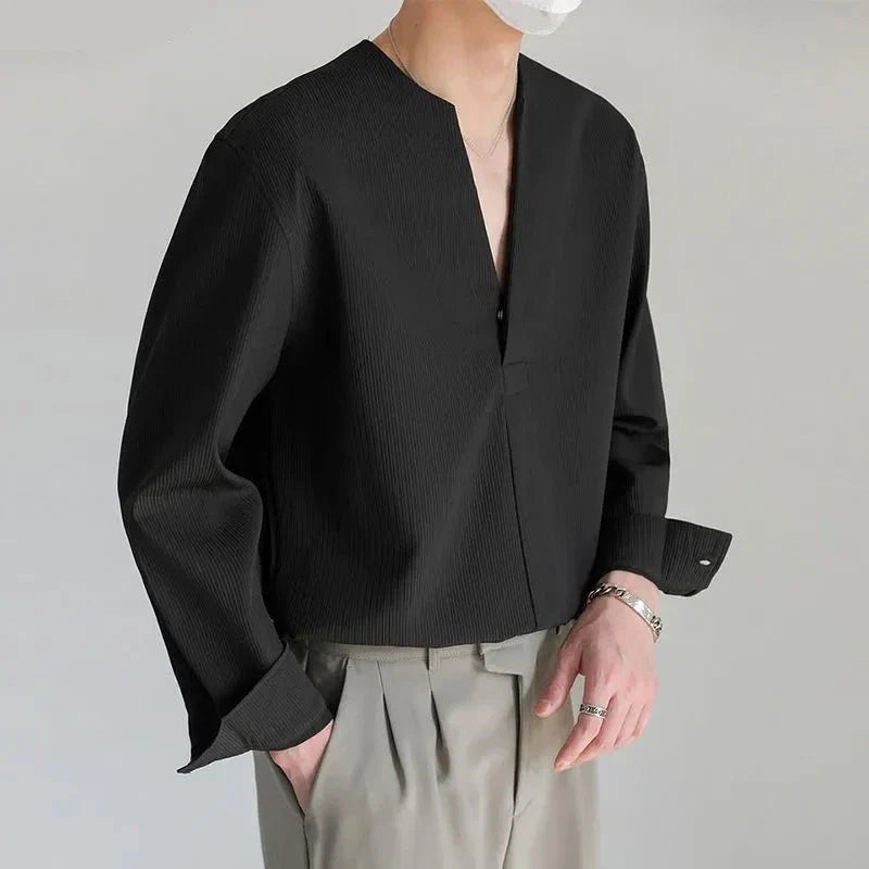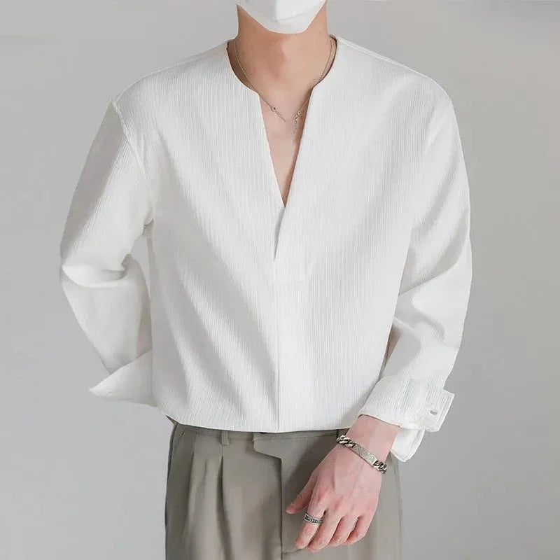 Fashion Men Shirt Solid Color Loose V Neck Long Sleeve Men Clothing Streetwear Korean Style Casual Shirts Men S-5XL