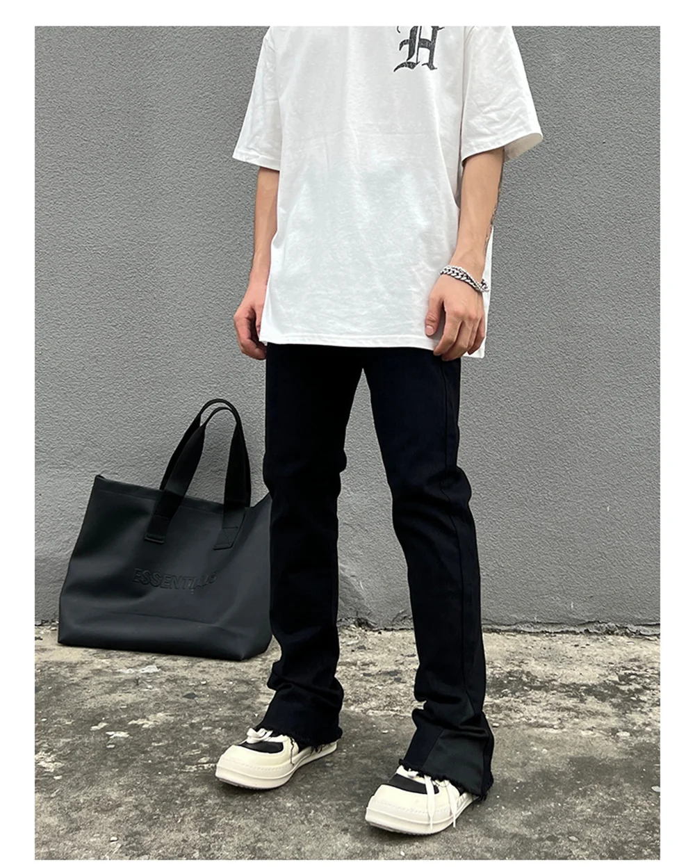 Flared Jeans Men Y2k Skinny Street Fashion Pantalones Streetwear Vaqueros Trousers Autumn Black Slim Summer Casual Denim Pants
