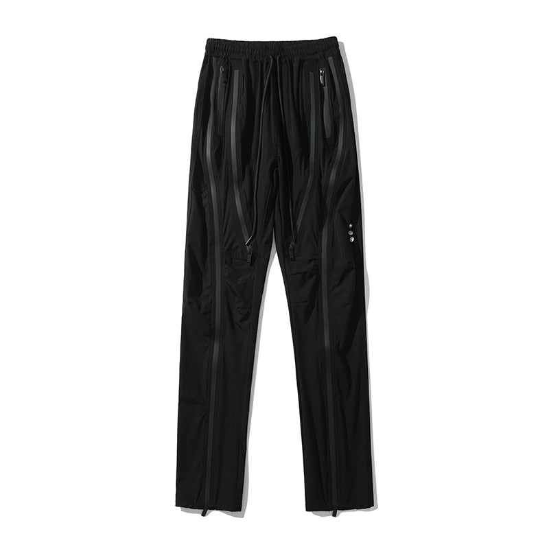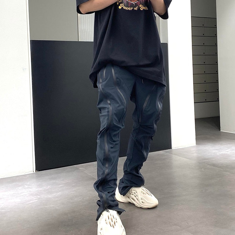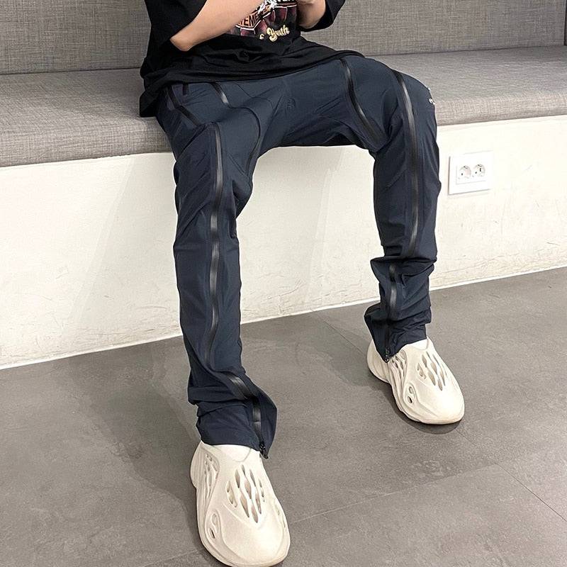 Front Double Zipper Straight Loose Vibe Style Mens Casual Trousers Drawstring Black Multi-pockets Oversized Couple Track Pants