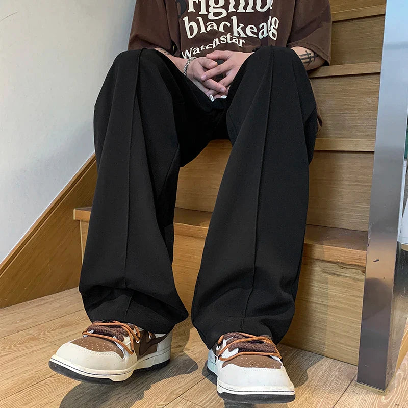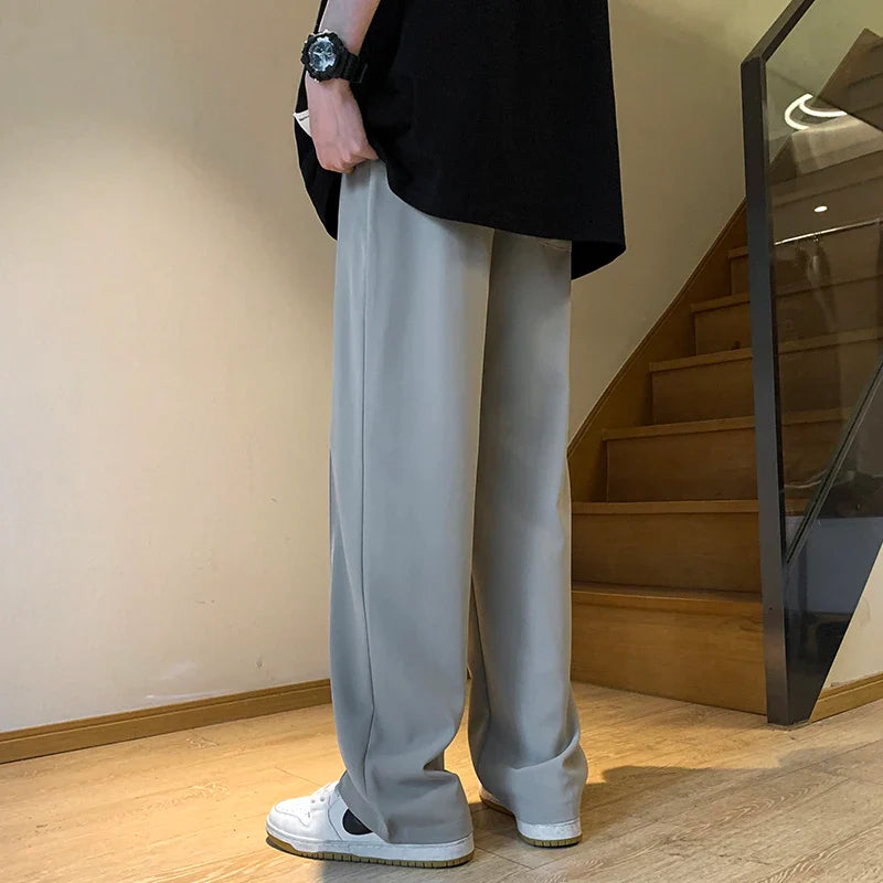 Gray/Black Spring Summer Ice Silk Straight Pants Men's Pleated Loose Casual Mopping Trousers Trend Daily Streetwear Harem Pants