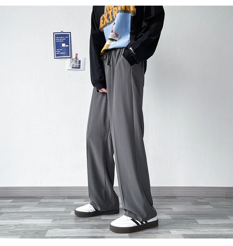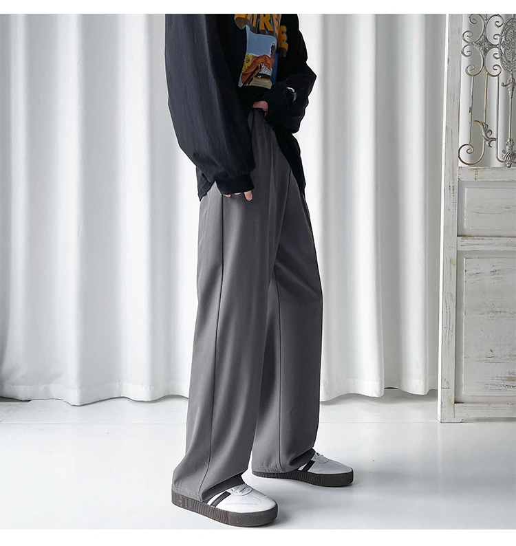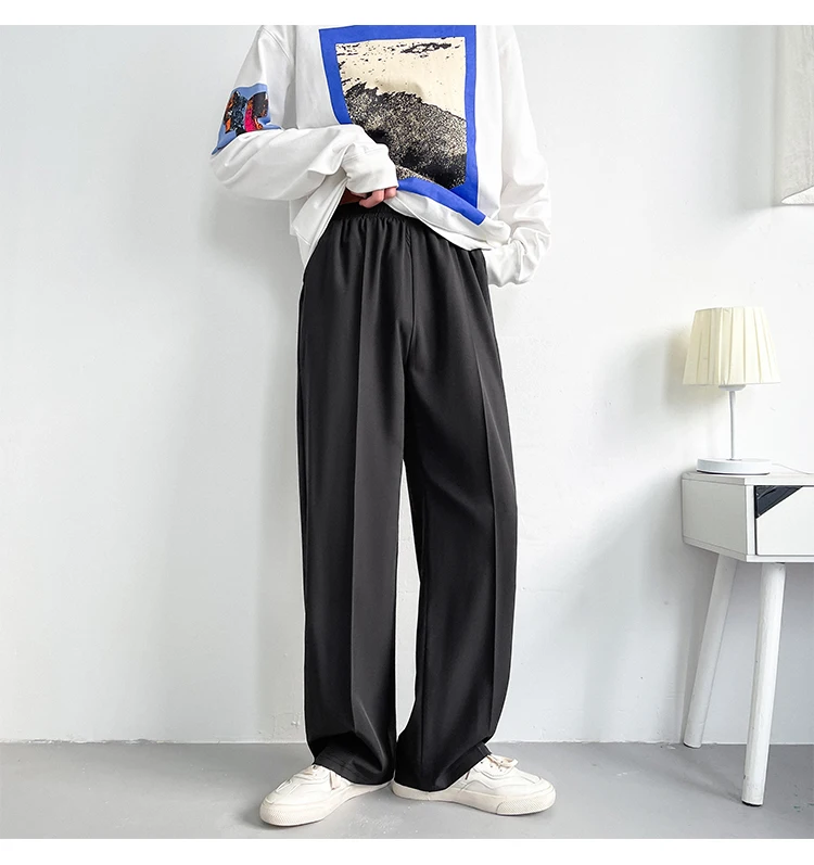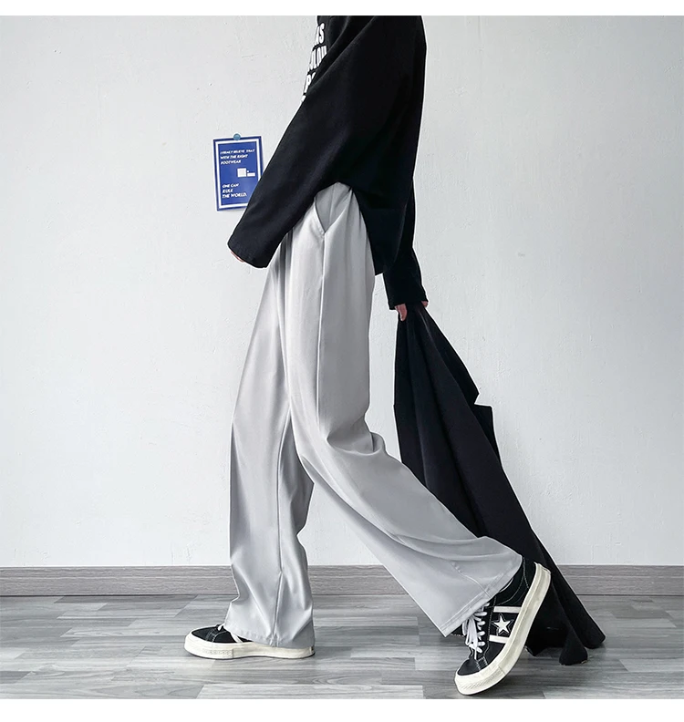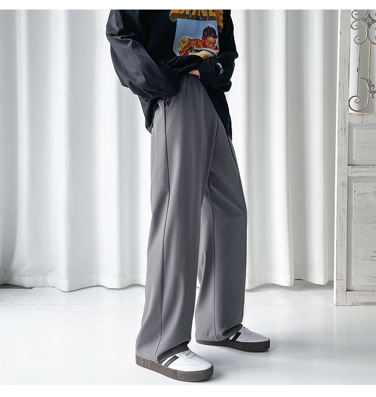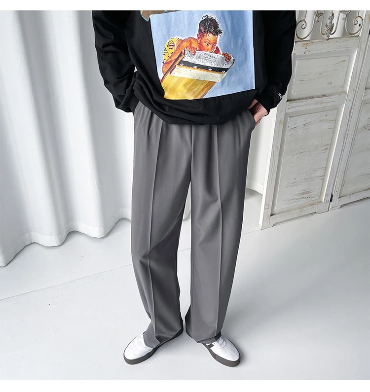 Gray/Blue/Black Suit Pants Men Fashion Society Mens Dress Pants Korean Loose Straight Wide Leg Pants Mens Formal Trousers M-3XL