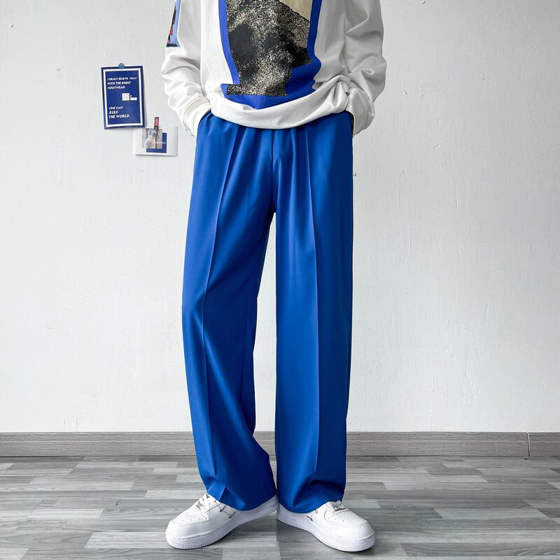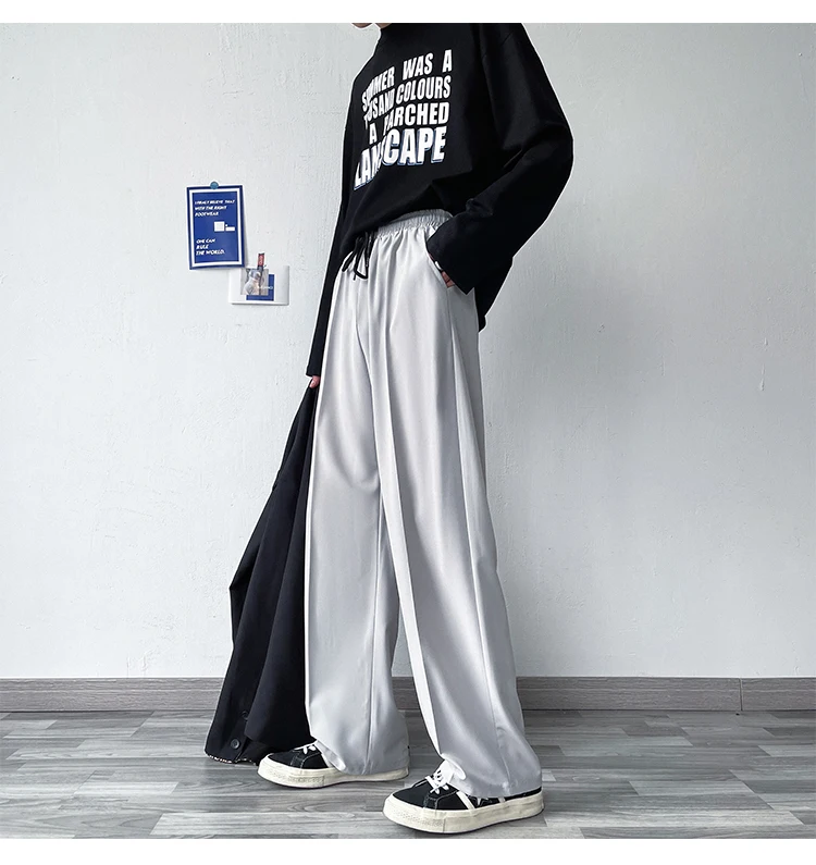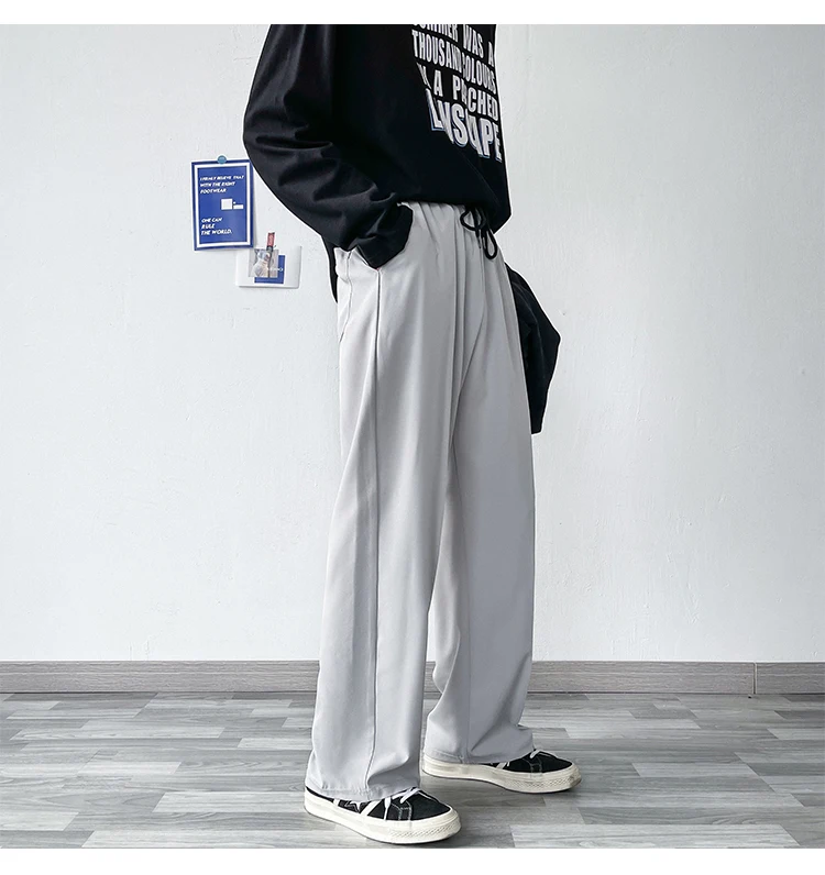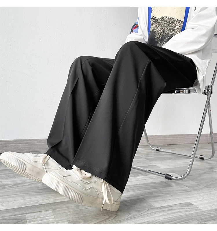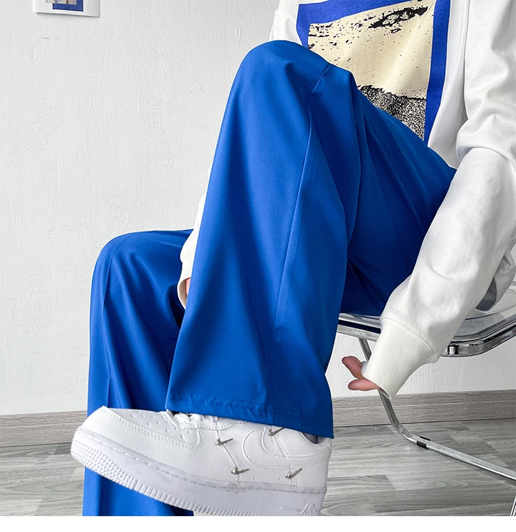 Gray/Blue/Black Suit Pants Men Fashion Society Mens Dress Pants Korean Loose Straight Wide Leg Pants Mens Formal Trousers M-3XL