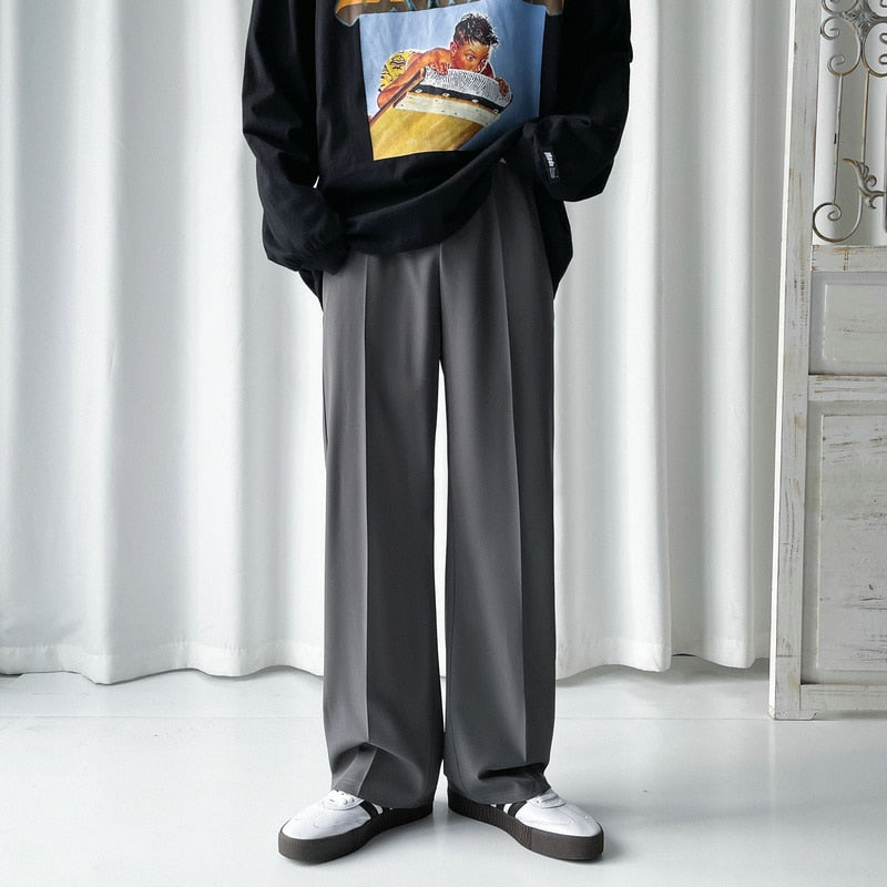 Gray/Blue/Black Suit Pants Men Fashion Society Mens Dress Pants Korean Loose Straight Wide Leg Pants Mens Formal Trousers M-3XL