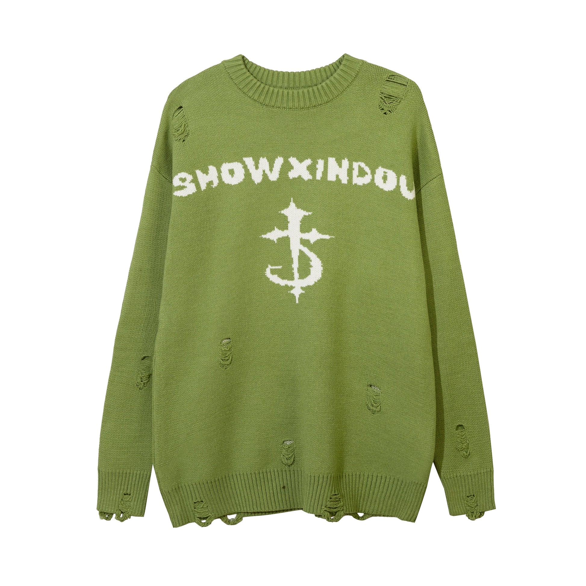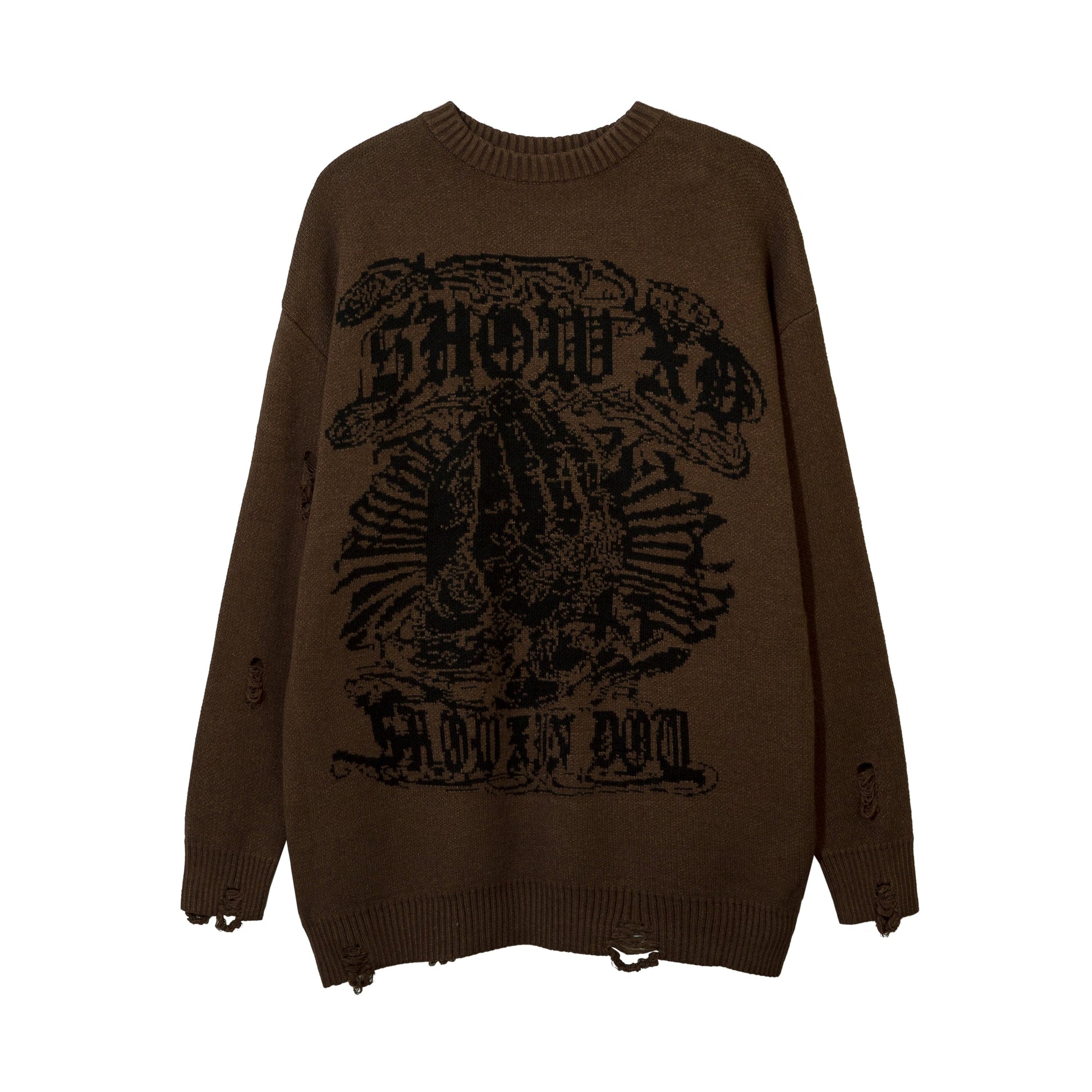 Harajuku Printed Knitwears Women Streetwear Hip Hop Destroyed Hole Ripped Pullovers Jumper Oversized Men