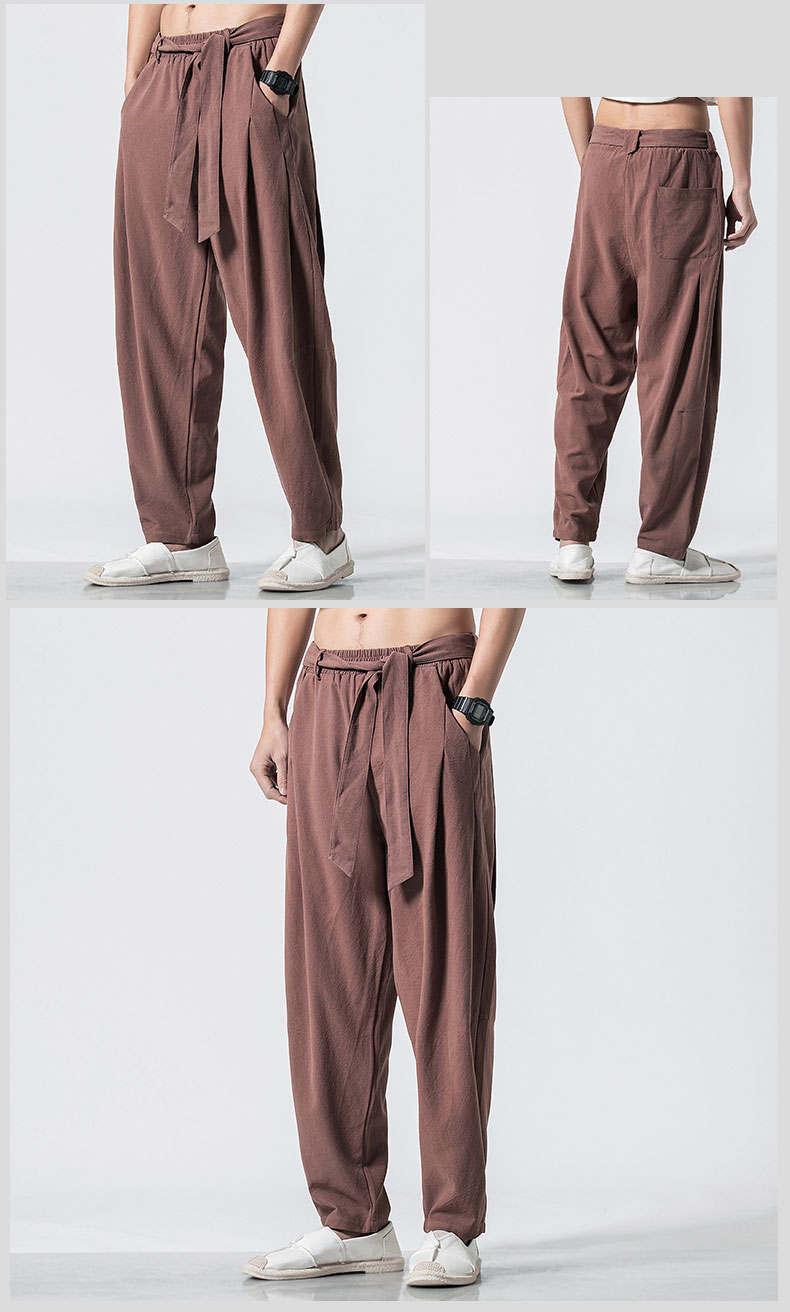 Hemp Tai Chi Trousers Traditional Chinese Clothing For Men Oriental Clothes 5XL Tall Size Japanese Fashion Male Mens Baggy Pants