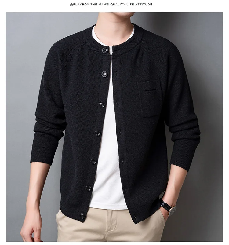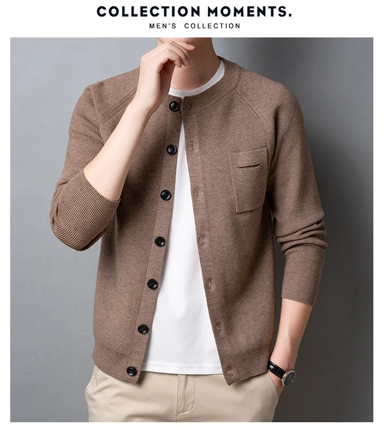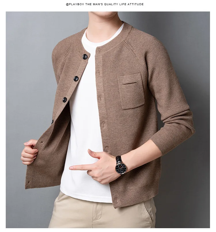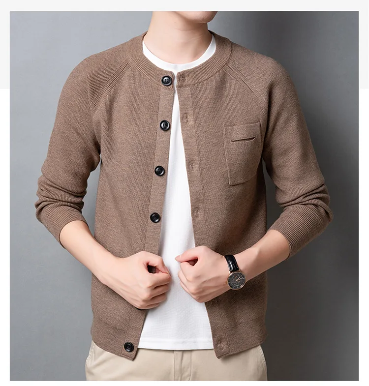High Quality Fall Sweater Cardigan Men Knitting Pocket Sweaters Winter Warm Coat Male Single Breasted Top Camel Cardigan Sweater