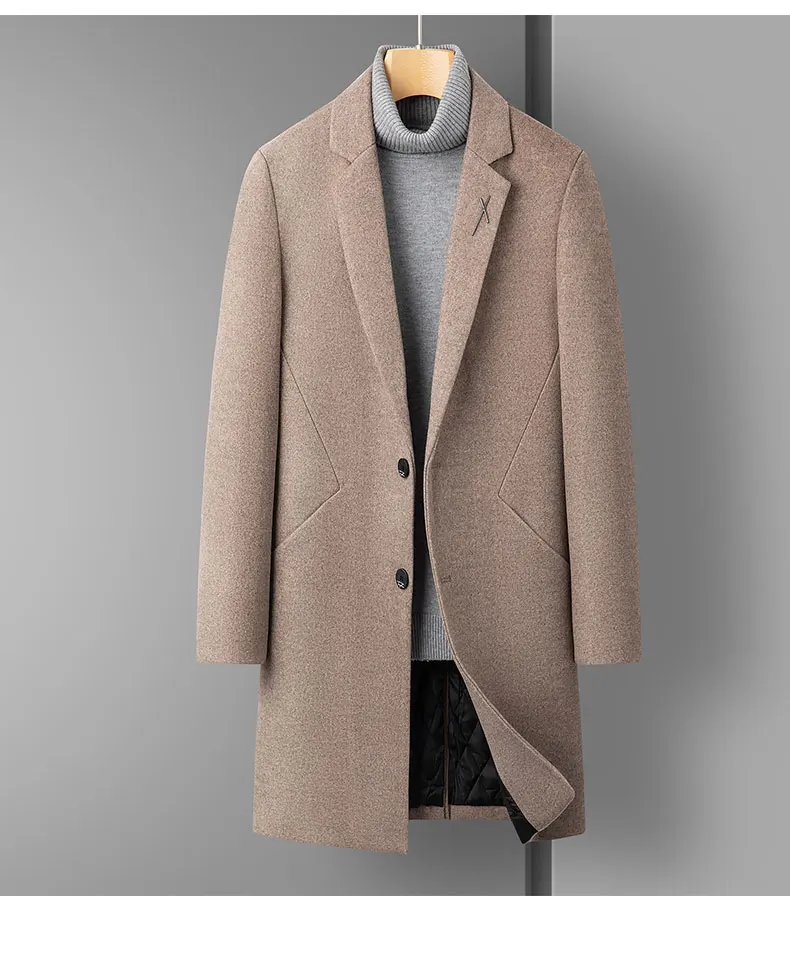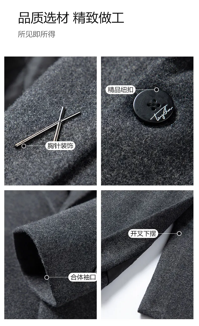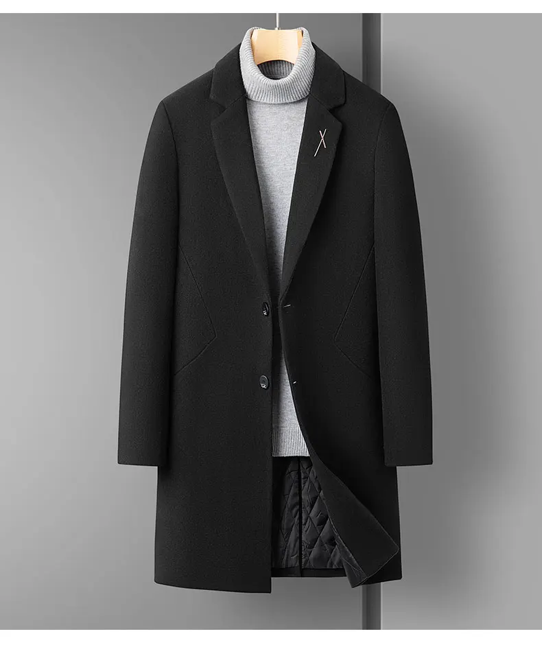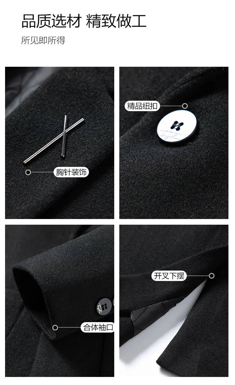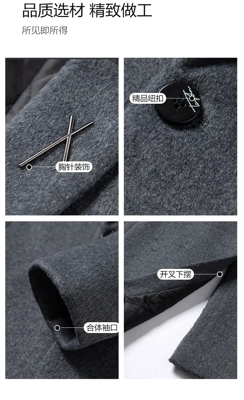 High Quality Men's Fashion Handsome Trend Casual Plus Cotton Wool Coat Coat Long Coat Men Cashmere Thick (Winter) Polyester