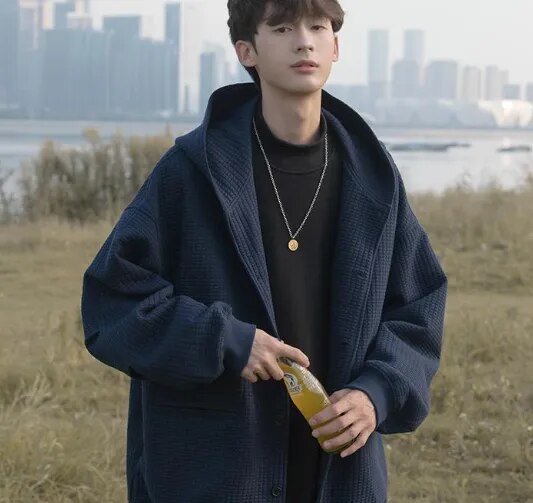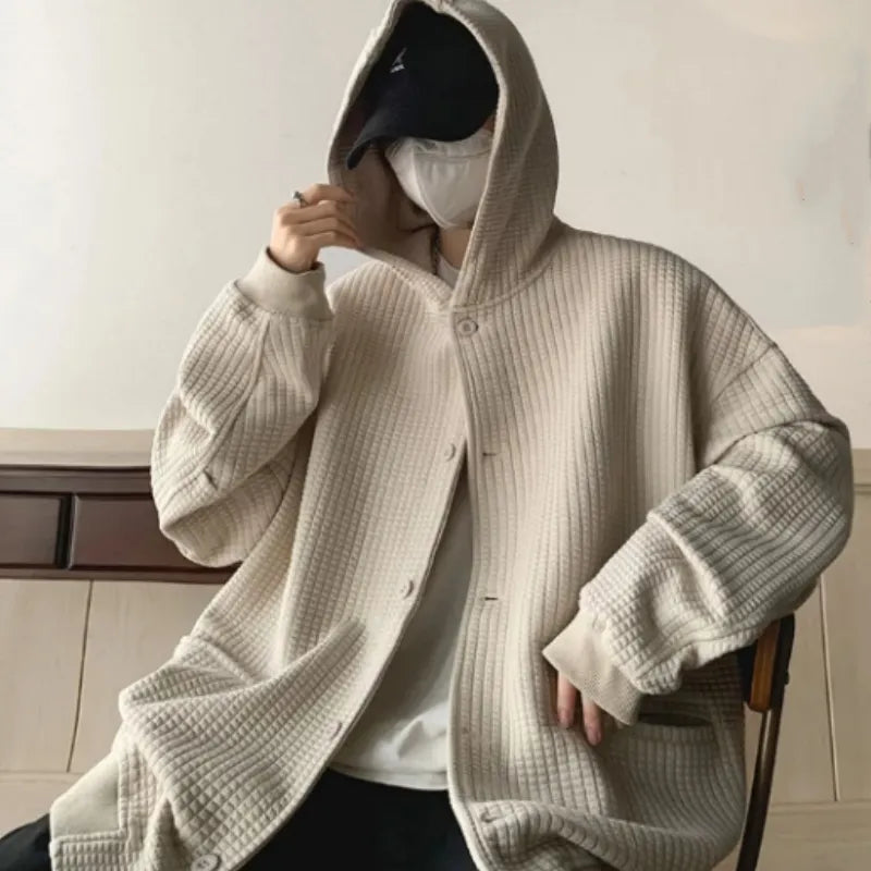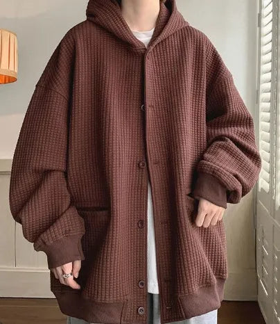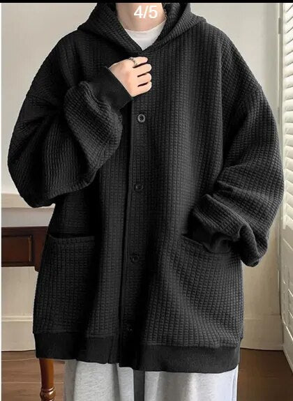 High Quality Men's Waffle Sweatshirt Korea Version Hooded Couple Coat Ins Hop Thickened Harajuku Men Women Jacket Oversize M-3XL