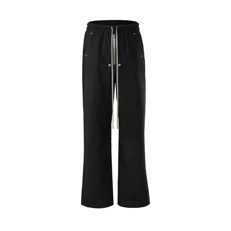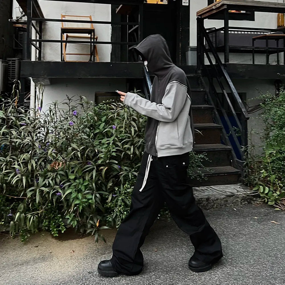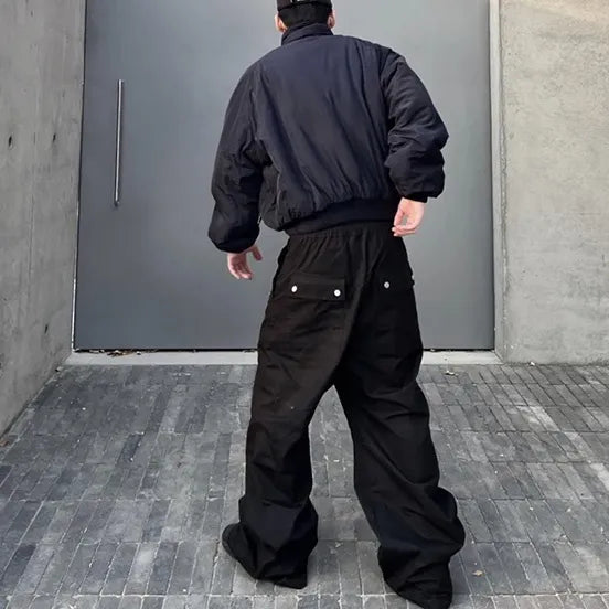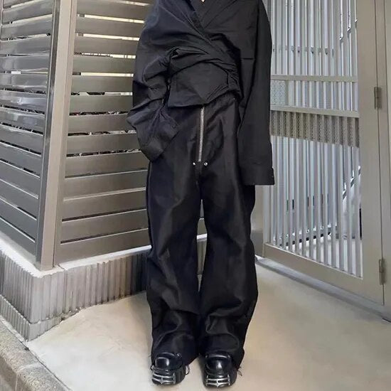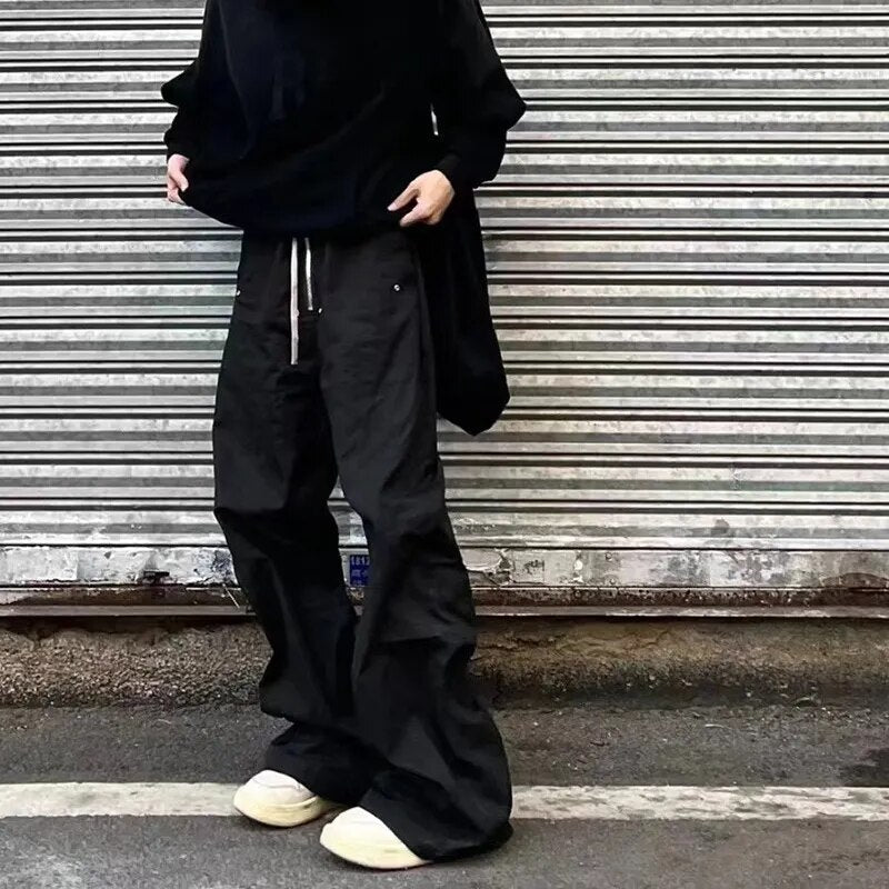 High Street Ro Wide Leg Black Casual Drawstring Trousers Men's Straight Loose Vibe Style Cargos Unisex Oversized Y2K Overalls